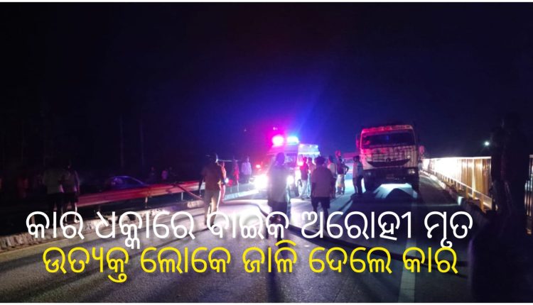 ସୁନ୍ଦରଗଡ : କାର ଧକ୍କାରେ ବାଇକ ଅରୋହୀଙ୍କ ମୃତ୍ୟୁ।। କାର ଜାଳି ଦେଲେ ଉତ୍ୟକ୍ତ ଲୋକେ।। ପୋଲିସ , ଫାୟାର ଟିମ୍ ଘଟଣା ସ୍ଥଳରେ ପହଁଚିଲେ।