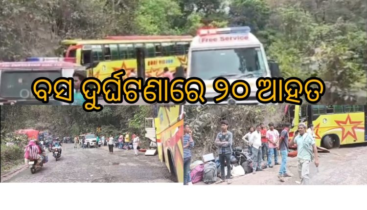 ଆଗକୁ ଇଦ୍ ପର୍ବ ଥିବାରୁ ଅନୁଗୋଳ, ଢେଙ୍କାନାଳ ଓ କେନ୍ଦୁଝର ଜିଲ୍ଲାରୁ ଅନେକ ଯାତ୍ରୀଙ୍କୁ ଧରି ବସ୍ଟି ରାଉରକେଲାରୁ ବାହାରି ମୁର୍ଶୀଦାବାଦ ଅଭିମୁଖେ ଯାଉଥିଲା। ଆଜି ସକାଳେ ବାଙ୍ଗିରିପୋଷି ଘାଟିରେ ବସ୍ଟି ରାସ୍ତାକଡ଼ରେ ଥିବା ପାହାଡ ସହ ପିଟି ହୋଇଯାଇଥିଲା। ଦୁର୍ଘଟଣାରେ ବସ୍ ଡ୍ରାଇଭର ସହ ୨୦ରୁ ଅଧିକ ଲୋକ ଆହତ ହୋଇଛନ୍ତି। ସମସ୍ତ ଆହତ ଯାତ୍ରୀଙ୍କୁ ଡାକ୍ତରଖାନାରେ ଭର୍ତ୍ତି କରାଯାଇଛି। ବସ୍ ଭିତରେ ଡ୍ରାଇଭର ଚାପି ହୋଇଯାଇଥିଲେ। ଅଗ୍ନିଶମ ବାହିନୀ ପହଞ୍ଚି କଟର ସାହାଯ୍ୟରେ କାଟି ତାଙ୍କୁ ଉଦ୍ଧାର କରିଥିଲେ।