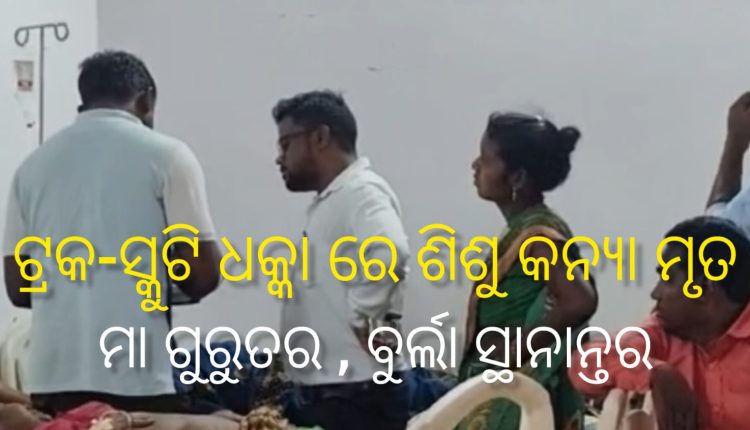 ସୁନ୍ଦରଗଡ଼ : ୨୪/୫(ସତ୍ୟାନ୍ୟୁଜ) ରାଉରକେଲା- ସମ୍ବଲପୁର ବିଜୁ ଏକ୍ସପ୍ରେସ ୱେ କରମଡିହିରେ ଆଜି ଏକ ମର୍ମନ୍ତୁଦ ସଡ଼କ ଦୁର୍ଘଟଣା ରେ ଜଣେ ୬ ମାସ ଶିଶୁ କନ୍ୟାର ମୃତ୍ୟୁ ଘଟିଥିବା ବେଳେ ମାଆ ଗୁରୁତର ଆହତ ହୋଇଛି । ଦ୍ରୁତ ଗତିରେ ଏକ ଟ୍ରକ ମାଡ଼ି ଆସି ରାସ୍ତାରେ ଯାଉଥିବା ସ୍କୁଟିକୁ ଧକ୍କା ଦେଇଥିଲା। ଫଳରେ ସ୍କୁଟିରେ ମା କୋଳରେ ବସିଥିବା ୬ ମାସର ଶିଶୁ କନ୍ୟାଟି ର ଶୋଚନୀୟ ମୃତ୍ଯୁ ଘଟିଛି। ମୃତା ଶିଶୁ ହେଲେ ବଡ଼ଗାଁ ଇତମା ର