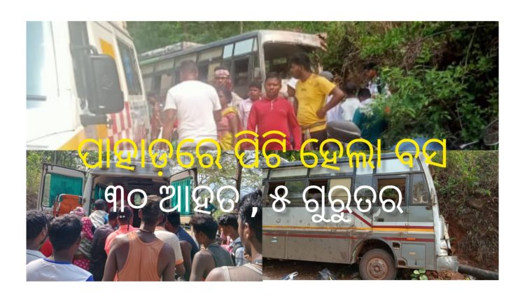 ରାଉରକେଲା/ ବଣାଇ ୧୭/୬ (ସତ୍ୟାନ୍ୟୁଜ) ସୁନ୍ଦର ଗଡ଼ ଜିଲ୍ଲା ଗୁରୁଣ୍ଡିଆ ଥାନାର ତlମଡା ନିକଟରେ ଆଜି ସକାଳେ ଏକ ବସ ଦୁର୍ଘଟଣା ଗ୍ରସ୍ତ ହୋଇ ୩୦ ରୁ ଉର୍ଦ୍ଧ୍ବ ଯାତ୍ରୀ ଆହତ ହୋଇଛନ୍ତି। ଆହତ ମାନଙ୍କ ମଧ୍ୟରୁ ୫ ଜଣ ଗୁରୁତର ଅଛନ୍ତି। ସମସ୍ତ ଆହତ ବସ ଯାତ୍ରୀଙ୍କୁ ରାଉରକେଲା ସରକାରୀ ଡାକ୍ତରଖାନା ଚିକିତ୍ସା ପାଇଁ ଅଣାଯାଇଛି। ଆହତଙ୍କ ମଧ୍ୟରେ କେତେଜଣ ଗର୍ଭବତୀ ମହିଳା ଏବଂ ଆଶା କର୍ମୀ ଥିବା ଜଣାପଡିଛି। ବ୍ରେକ୍ ଫେଲ ଯୋଗୁ ବସ ପାହାଡ଼ରେ ପିଟି ହୋଇଯାଇ ଥିବା ଅନୁମାନ କରାଯାଇଛି।