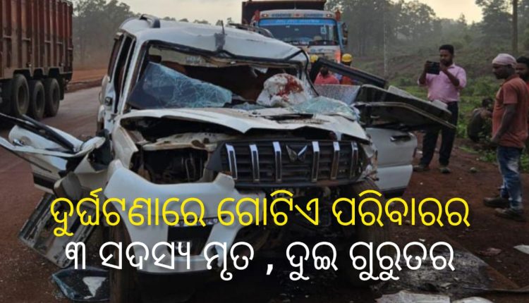 ରାଉରକେଲା : କୋଇଡା ରେ ମର୍ମନ୍ତୁଦ ସଡ଼କ ଦୁର୍ଘଟଣାରେ ଗୋଟିଏ ପରିବାରର ୩ ଜଣଙ୍କ ମୃତ୍ୟୁ।। ମୃତକଙ୍କ ମଧ୍ୟରେ ୨ ନାବାଳକ ଏବଂ ଜଣେ ଯୁବତୀ।