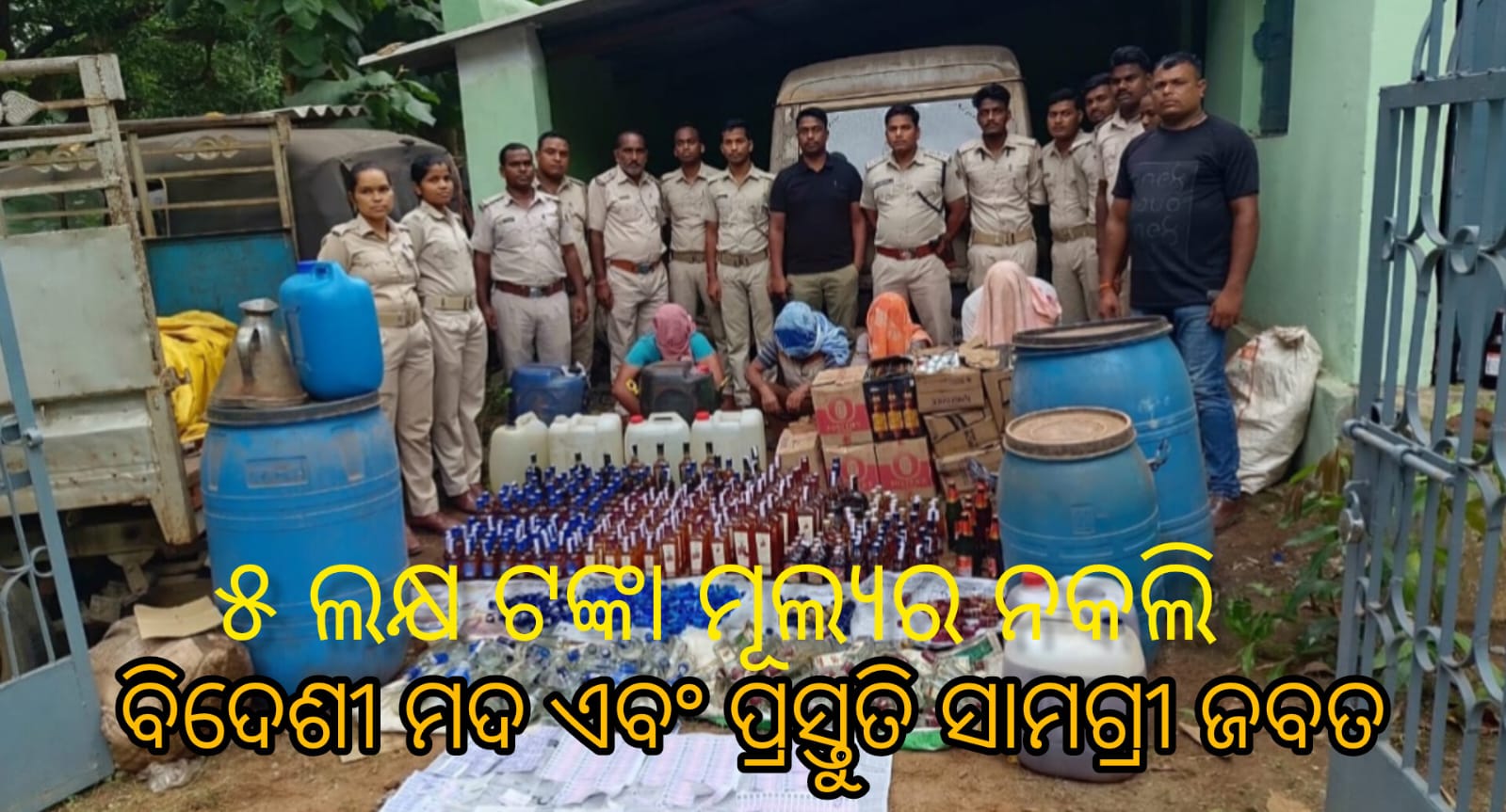 ସ୍ପିରିଟ୍ , ନାମୀ କମ୍ପାନୀର ଷ୍ଟିକର୍ , ବୋତଲ, ଠିପି ଏବଂ ବିକ୍ରି ଲାଗି ପ୍ରସ୍ତୁତ ନକଲି ମଦ ଜବତ କରାଯାଇଛି। ଜବତ ସାମଗ୍ରୀ ର ମୂଲ୍ୟ ୫ ଲକ୍ଷ ଟଙ୍କା ହେବ ବୋଲି କୁହା ଯାଉଛି। ନକଲି ମଦ ବ୍ୟବସାୟ କରୁଥିବା ଅଭିଯୋଗ ରେ ୪ ଜଣଙ୍କୁ ଗିରଫ କରାଯାଇଛି।