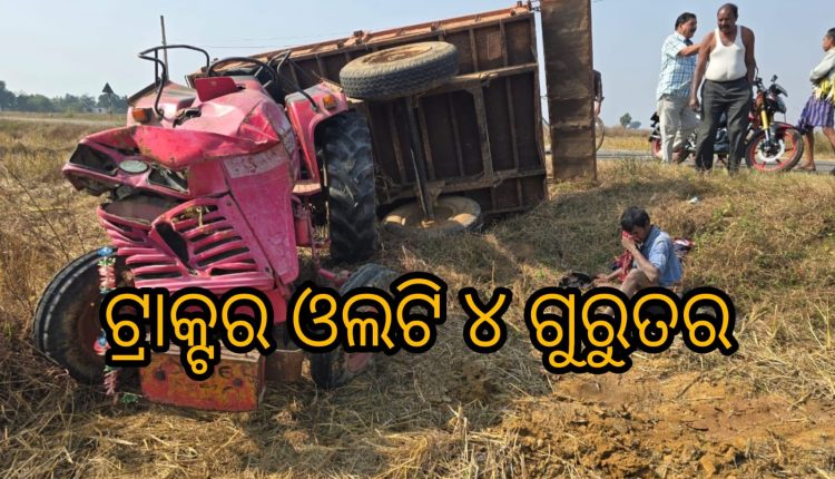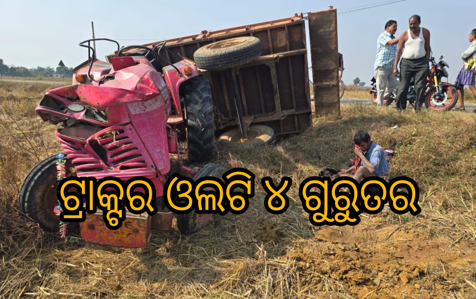 ବଣାଇ:୨୯/୧୧(ସତ୍ୟାନ୍ୟୁଜ) କ୍ଷେତ କୁ ଧାନ ଆଣି ଯାଉଥିବା ବେଳେ ଟ୍ରାକ୍ଟର ଓଲଟି ପଡି ୪ ଜଣ ଆହତ ହୋଇଛନ୍ତି। ଗୁରୁତର ଆହତ ମାନଙ୍କୁ ବଣାଇ ଡାକ୍ତରଖାନାରେ ଭର୍ତ୍ତି କରା ଯାଇଛି। ବଣାଇ ଥାନା ଅନ୍ତର୍ଗତ ଜକେଇକଲା – ତଳିତା ରାସ୍ତାରେ ଶୁକ୍ରବାର ଦିନ ପୂର୍ବାହ୍ନରେ ଏହି ଟ୍ରାକ୍ଟର ଭାରସାମ୍ୟ ହରାଇ ୧୦ ଫୁଟ୍ ତଳକୁ ଖସି ପଡିଥିଲା। ଫଳରେ ଡ୍ରାଇଭର ସମେତ ୪ ଜଣ ଗୁରୁତର ଭାବେ ଆହତ ହୋଇ ଥିଲେ। ଖବର ପାଇ ସ୍ଥାନୀୟ ଲୋକେ ଏବଂ ପୋଲିସ୍ ଆହତ ମାନଙ୍କୁ ଉଦ୍ଧାର କରି ବଣାଇ ଡାକ୍ତରଖାନା ପଠାଇ ଛନ୍ତି।