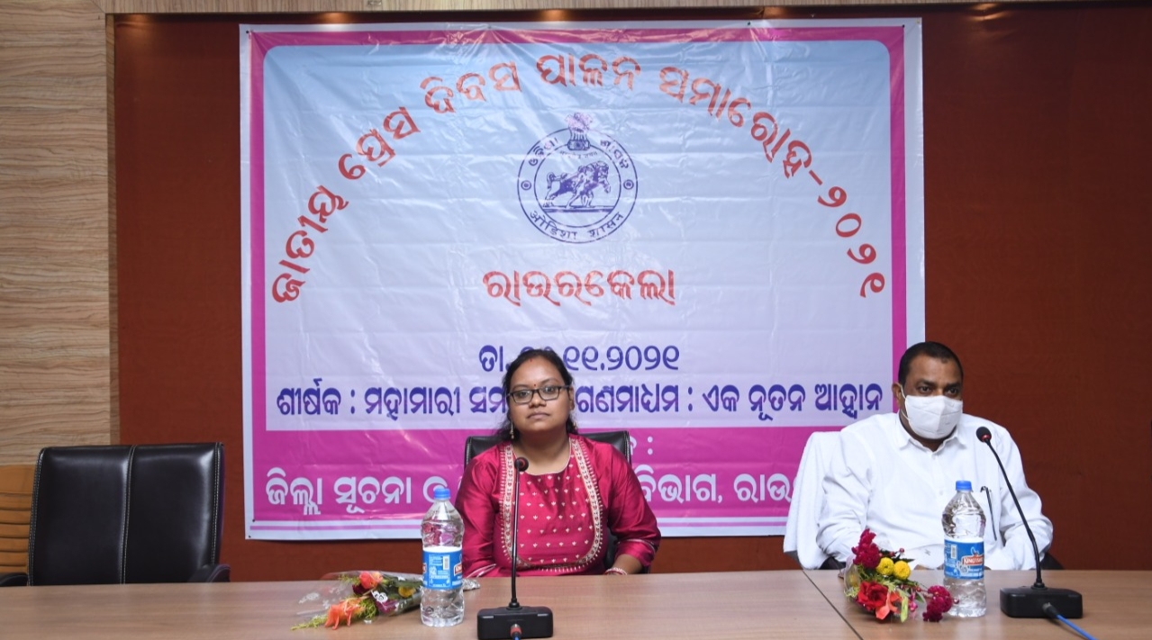 ରାଉରକେଲା (ବ୍ୟୁରୋ) ୧୬.୧୧.୨୧- ଜିଲ୍ଲା ସୂଚନା ଓ ଲୋକ ସମ୍ପର୍କ ବିଭାଗ, ରାଉରକେଲା ପକ୍ଷରୁ ଜାତୀୟ ପ୍ରେସ ଦିବସ ପାନପୋଷ ଆଇଟିଡିଏ ସମ୍ମିଳନୀ କକ୍ଷରେ ପାଳିତ ହୋଇଯାଇଛି। ଏହି ଅବସରରେ ‘ମହାମାରୀ ସମୟରେ ଗଣମାଧ୍ୟମ – ଏକ ନୂତନ ଆହ୍ଵାନ’ ବିଷୟବସ୍ତୁକୁ ନେଇ ସ୍ଥାନୀୟ ସାମ୍ବାଦିକମାନେ ବିସ୍ତୃତ ଆଲୋଚନା କରିଥିଲେ।