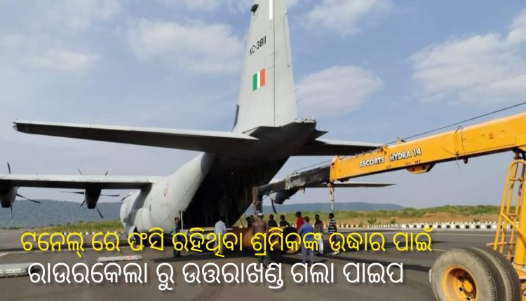 ରାଉରକେଲା : ଉତ୍ତରାଖଣ୍ଡ ଟନେଲରେ ଫସି ରହିଥିବା ଶ୍ରମିକଙ୍କ ଉଦ୍ଧାର ପାଇଁ ରାଉରକେଲାରୁ ଗଲା ପାଇପ।। ଏଆର ଫୋର୍ସ ବିମାନରେ ଗଲା ପାଇପ।