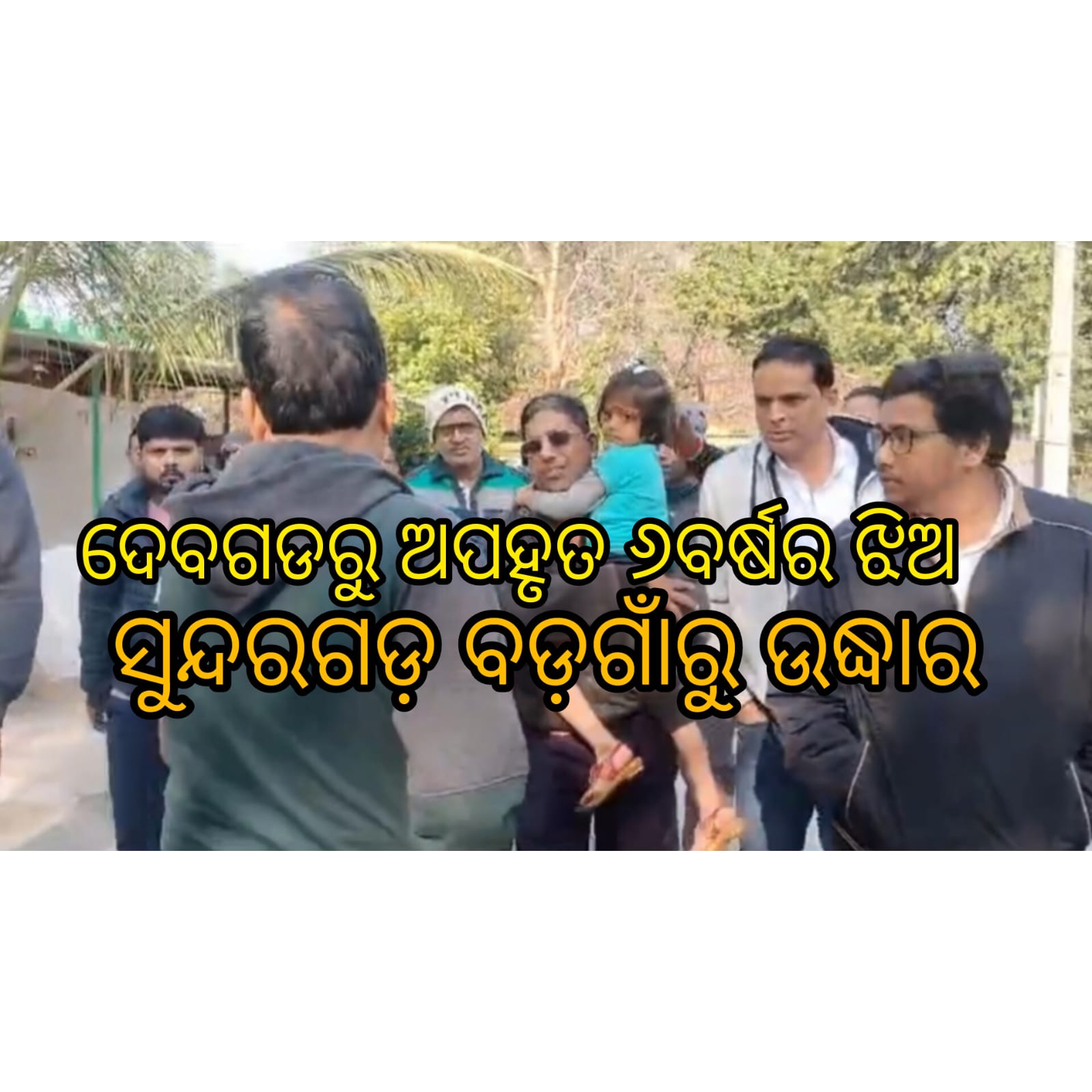 ରାଉରକେଲା : ଦେବଗଡରୁ ଅପହୃତ ୬ ବର୍ଷର ଝିଅ ସୁନ୍ଦରଗଡ଼ ବଡ଼ଗାଁରୁ ଉଦ୍ଧାର।। ଗତକାଲି ସନ୍ଧ୍ୟାରେ ଦ୍ରୁବୃତ୍ତ ମାନେ ଅପହରଣ କରିନେଇଥିଲେ।