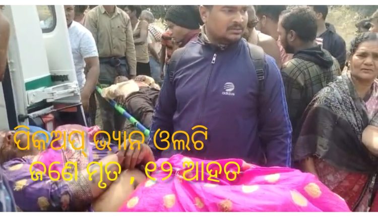 ସୁନ୍ଦରଗଡ଼ : ୫/୧ (ସତ୍ୟାନ୍ୟୁଜ) ପିକଅପ ଭ୍ୟାନ ଓଲଟି ଜଣେ ବ୍ୟକ୍ତି ମୃତ୍ୟୁ ବରଣ କରିଥିବା ବେଳେ ୧୨ ଜଣ ଆହତ ହୋଇଛନ୍ତି। ସୁନ୍ଦରଗଡ଼ ଭଷ୍ମା ଥାନା ଗୁଲଠା ନିକଟରେ ଭାରସାମ୍ୟ ହରାଇ ଏହି ଭ୍ୟାନ ଟି ଓଲଟି ପଡ଼ିଥିଲା