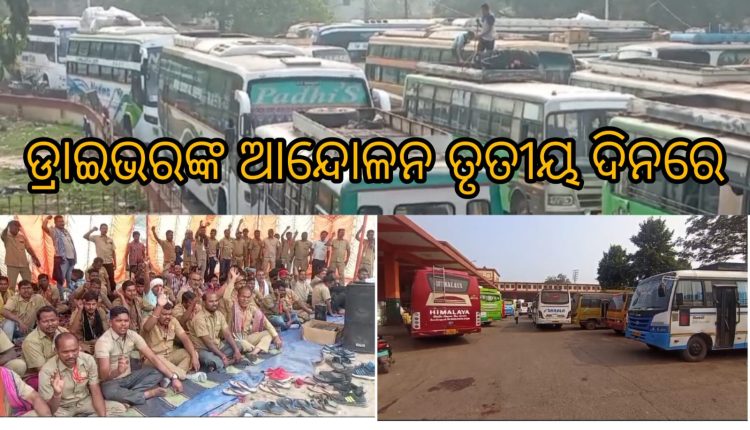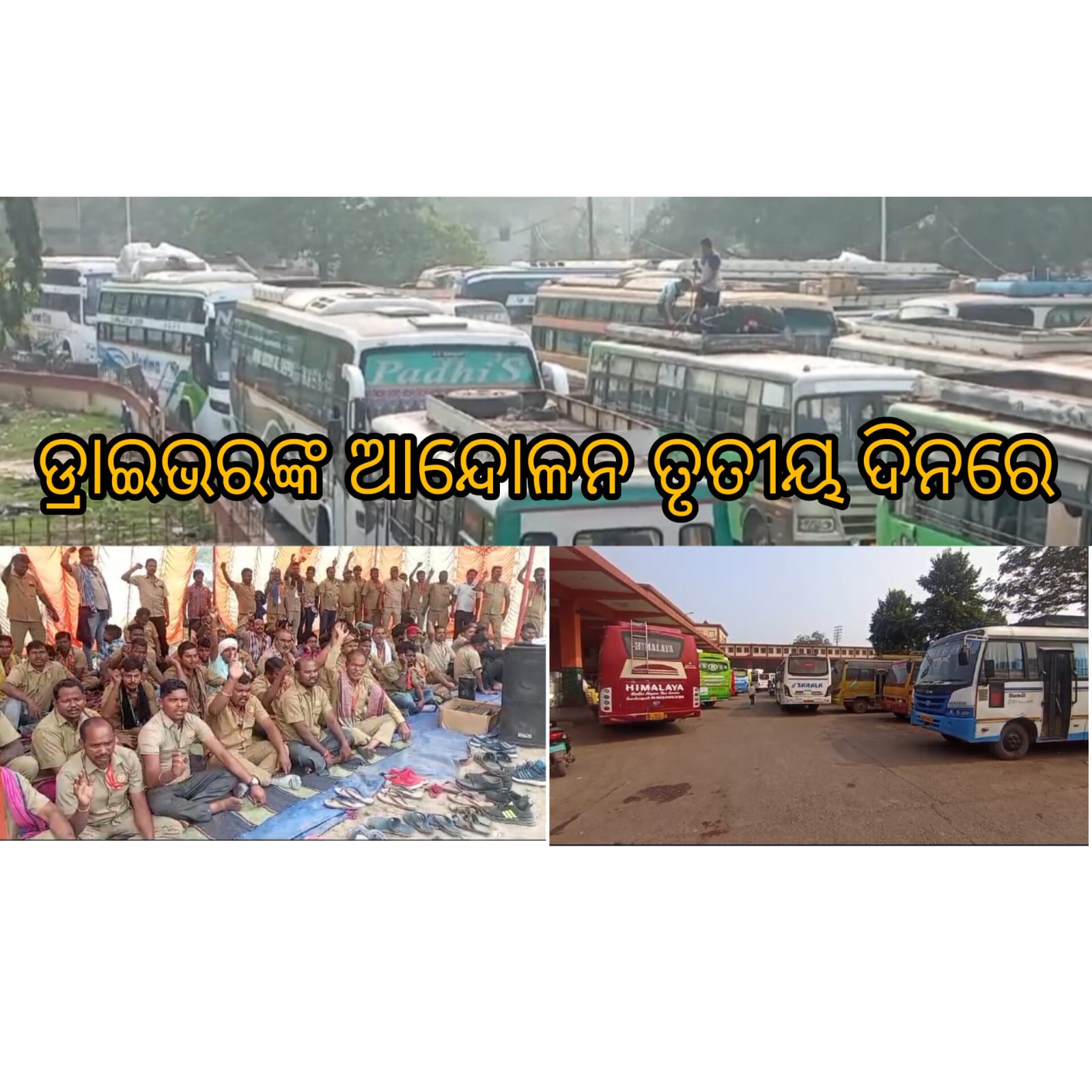 ରାଉରକେଲା : ଡ୍ରାଇଭର ମହାସଙ୍ଘର ଆନ୍ଦୋଳନ ତୃତୀୟ ଦିନରେ।। ସାଧାରଣ ପରିବହନ ବ୍ୟବସ୍ଥା ପ୍ରଭାବିତ।।’ମୋ ବସ’ ସେବା ବନ୍ଦ।