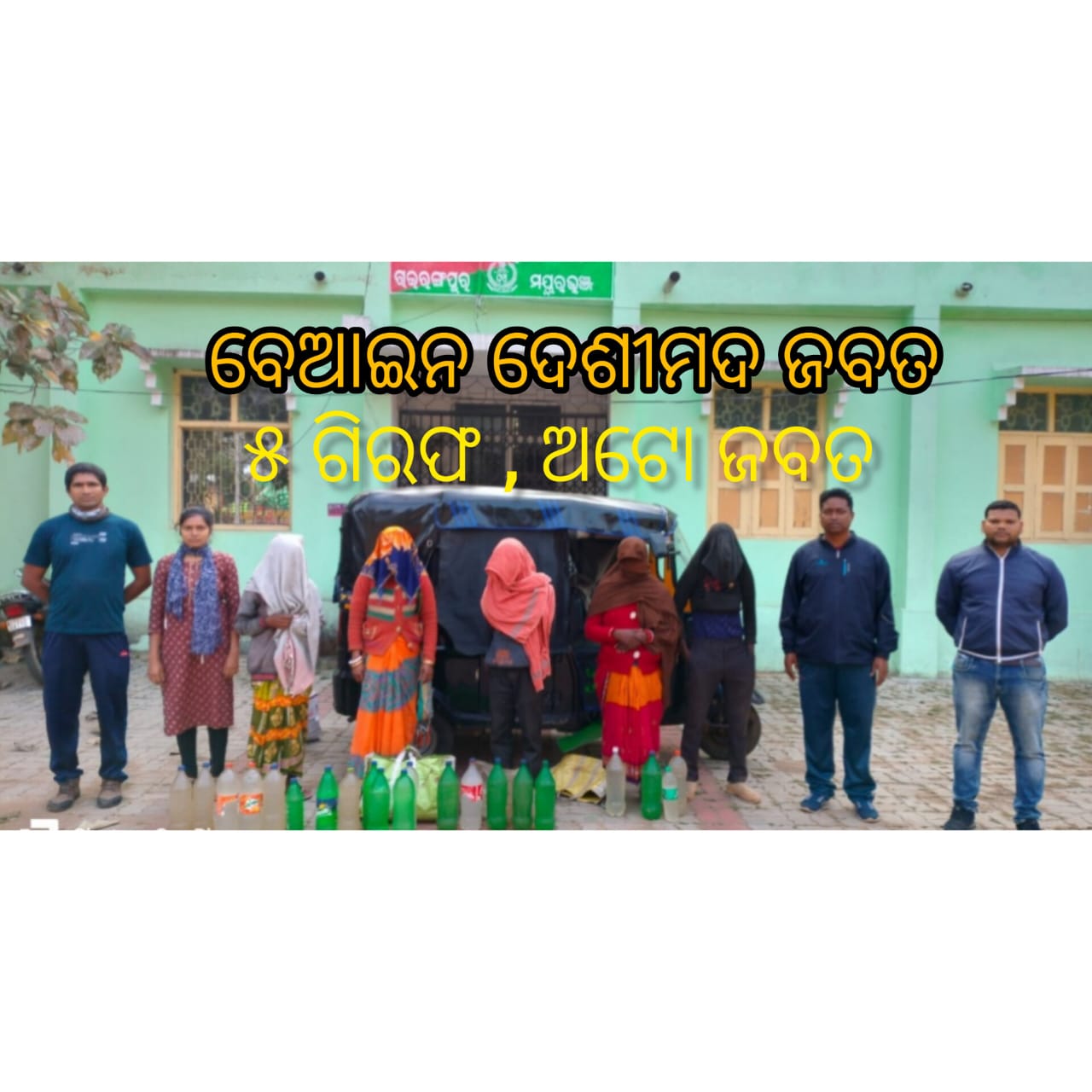 ମୟୁରଭଞ୍ଜ : ୨୩/୨(ସତ୍ୟାନ୍ୟୁଜ) (ଶ୍ୟାମଳେନ୍ଦୁ ପରିଡ଼ା) ଅଟୋ ରେ ଦେଶୀ ମଦ ଚାଲାଣ ହେଉଥିବା ବେଳେ ରାଇରଙ୍ଗପୁର ଅବକାରୀ ବିଭାଗ ବିପୁଳ ପରିମାଣର ମଦ ଜବତ କରିଛି। ମଦ ନେଇ ଯାଉଥିବା ଅଟୋ କୁ ଜବତ କରିବା ସହ ୩ ଜଣ ମହିଳାଙ୍କୁ ଗିରଫ କରାଯାଇଛି। ଏହା ସହ ଅନ୍ୟ ଜଣେ ଅଭିଯୁକ୍ତ ଏବଂ ଅଟୋ ଡ୍ରାଇଭରକୁ ମଧ୍ୟ ଗିରଫ କରାଯାଇଛି। ମୟୂରଭଞ୍ଜ ଜିଲ୍ଲା ଅବକାରୀ ଅଧ୍ୟିକ୍ଷକଙ୍କ ନିର୍ଦ୍ଦେଶ କ୍ରମେ ତଥା ରାଇରଙ୍ଗପୁର ଅବକାରୀ ଇନିସପେକ୍ଟର ବିନୟ ପ୍ରକାଶ ତିର୍କୀଙ୍କ ନେତୃତ୍ବରେ ଏହି ଚଢ଼ାଉ ହୋଇଥିଲା। ଅବକାରୀ ପୁଲିସ ଦିଲ୍ଲୀପ କୁମାର ଜେନା, ଅରୁଣ କୁମାର ମୁଦୁଲି, ବିପ୍ଲବ ମଲ୍ଲିକ ଓ ପ୍ରିୟଙ୍କା ମହାନ୍ତ ପ୍ରମୁଖ ଏହି ଚଢ଼ାଉରେ ସାମିଲ ଥିଲେ।