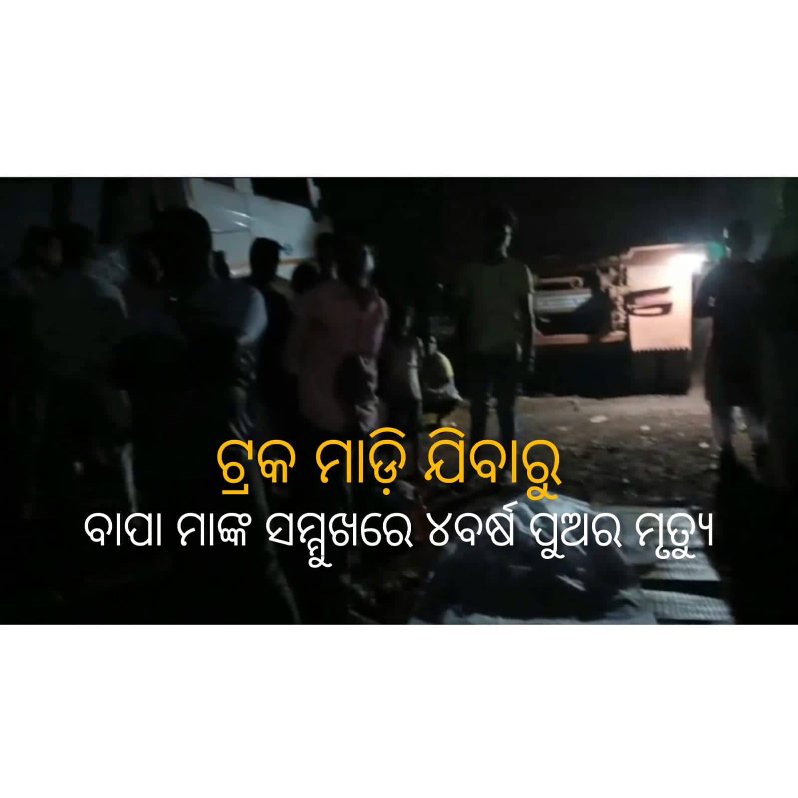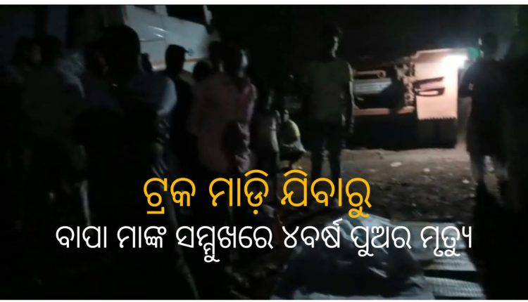 ବଣାଇ : ବରସୁଆଁ ତଳ ବଜ଼ାର ନିକଟରେ ଟ୍ରକ ଧକ୍କାରେ ବାପା , ମାଙ୍କ ସମ୍ମୁଖରେ ୪ ବର୍ଷ ବାଳକର ମୃତ୍ୟୁ।। ଘଟଣା ସ୍ଥଳରେ ଉତ୍ତେଜନା।