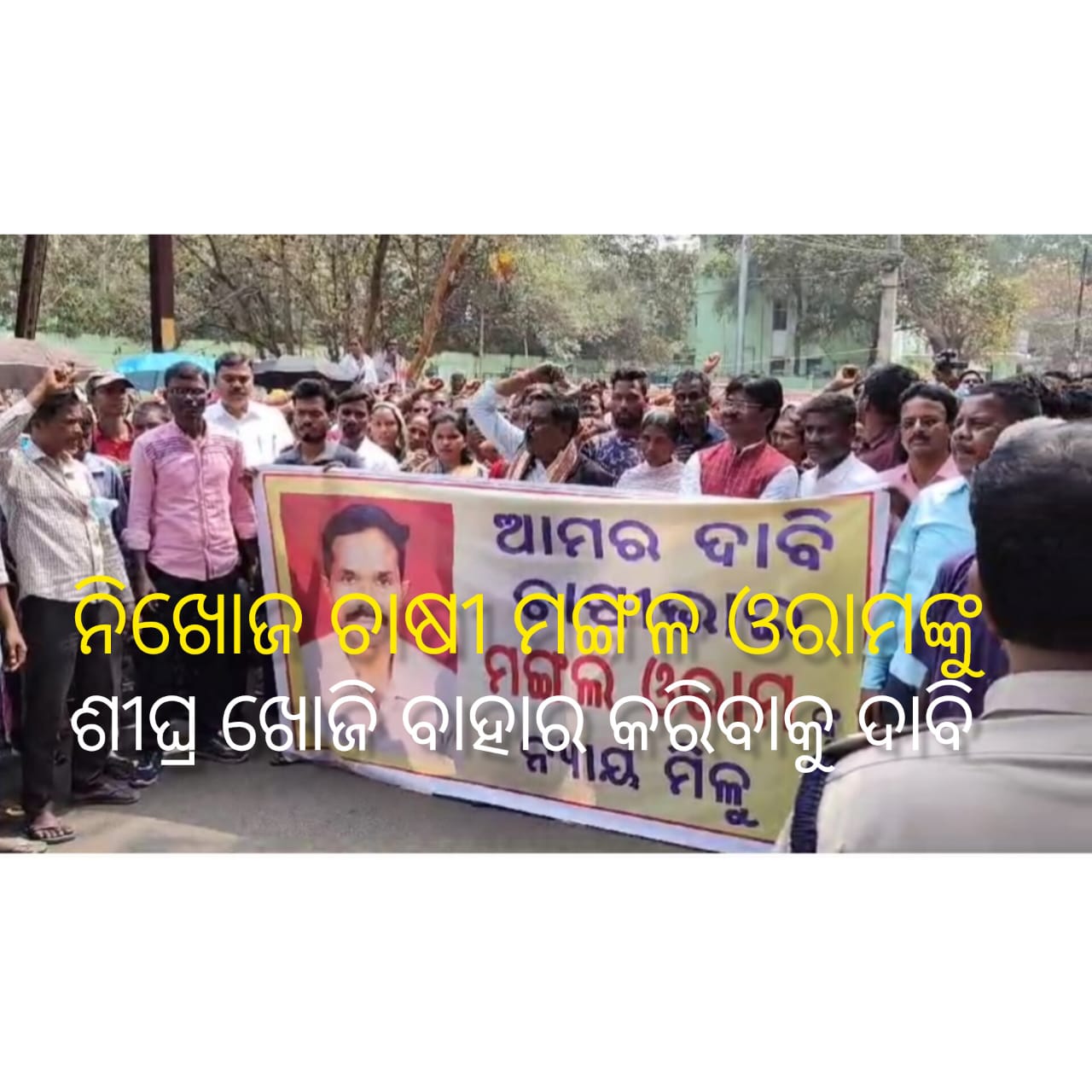 ରାଉରକେଲା : ନିଖୋଜ ଚାଷୀ ମଙ୍ଗଳ ଓରାମଙ୍କୁ ଶିଘ୍ର ଖୋଜି ବାହାର କରିବାକୁ ଦାବି।। ରାଉରକେଲା ଏସପିଙ୍କ କାର୍ଯ୍ୟାଳୟ ସମ୍ମୁଖରେ ବିକ୍ଷୋଭ।