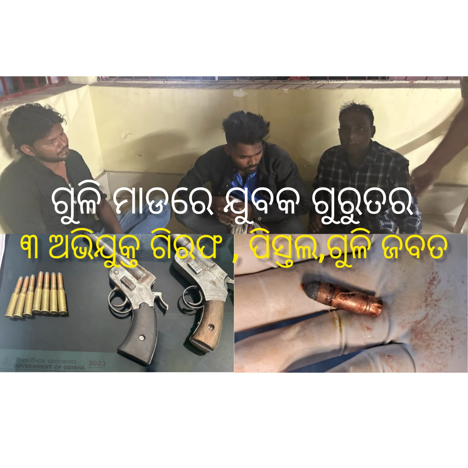ରାଉରକେଲା : କଲୁଙ୍ଗା ସାପ୍ତାହିକ ହାଟରେ ଗୁଳି ମାଡରେ ଜଣେ ଯୁବକ ଗୁରତର।। ତିନି ଅଭିଯୁକ୍ତ ଗିରଫ।। ୨ଟି ପିସ୍ତଲ , ୭ ଗୁଳି ଜବତ।