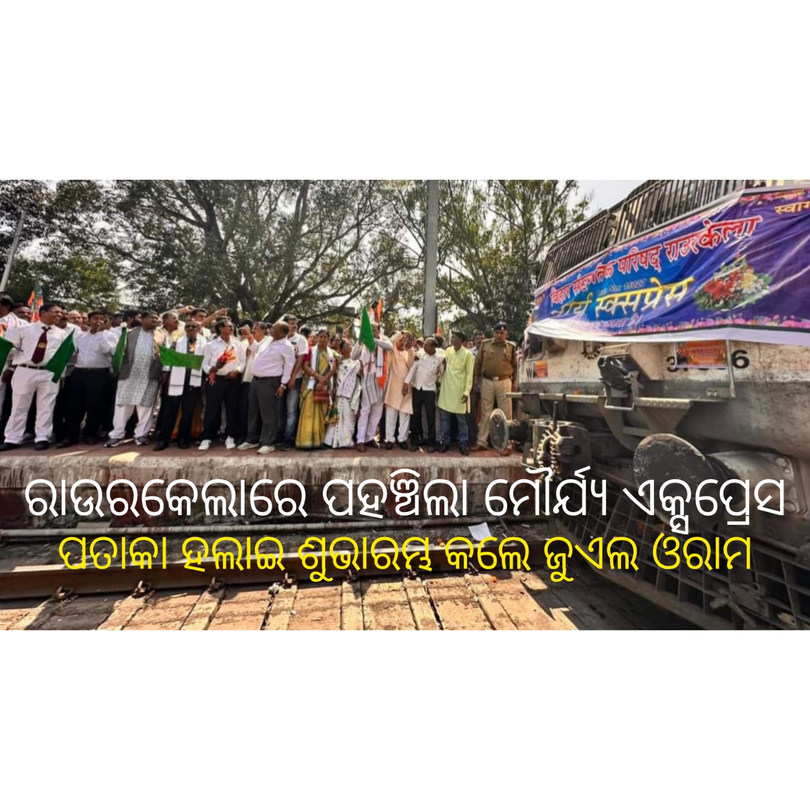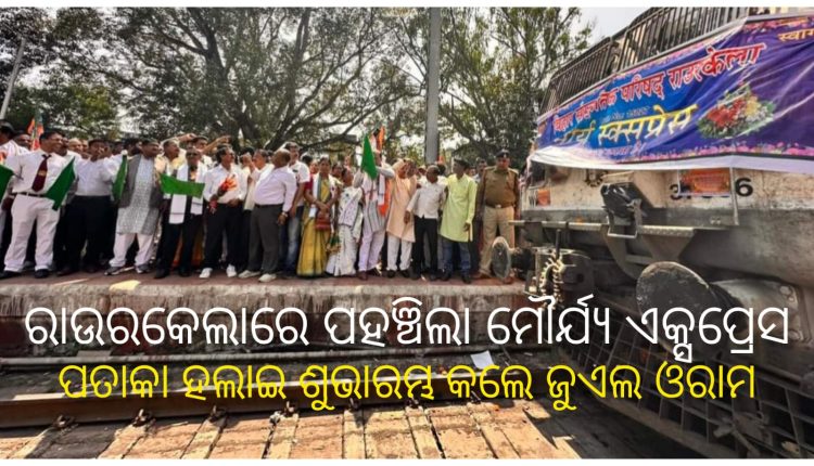 ରାଉରକେଲା : ରାଉରକେଲା ରେଳ ଷ୍ଟେସନରେ ମୋର୍ଯ୍ୟ ଏକ୍ସପ୍ରେସ ପହଞ୍ଚିବା ପରେ ବିପୁଳ ସ୍ୱାଗତ।। ପତାକା ହଲାଇ ଶୁଭାରମ୍ଭ କଲେ ସଂସଦ ଜୁଏଲ ଓରାମ।