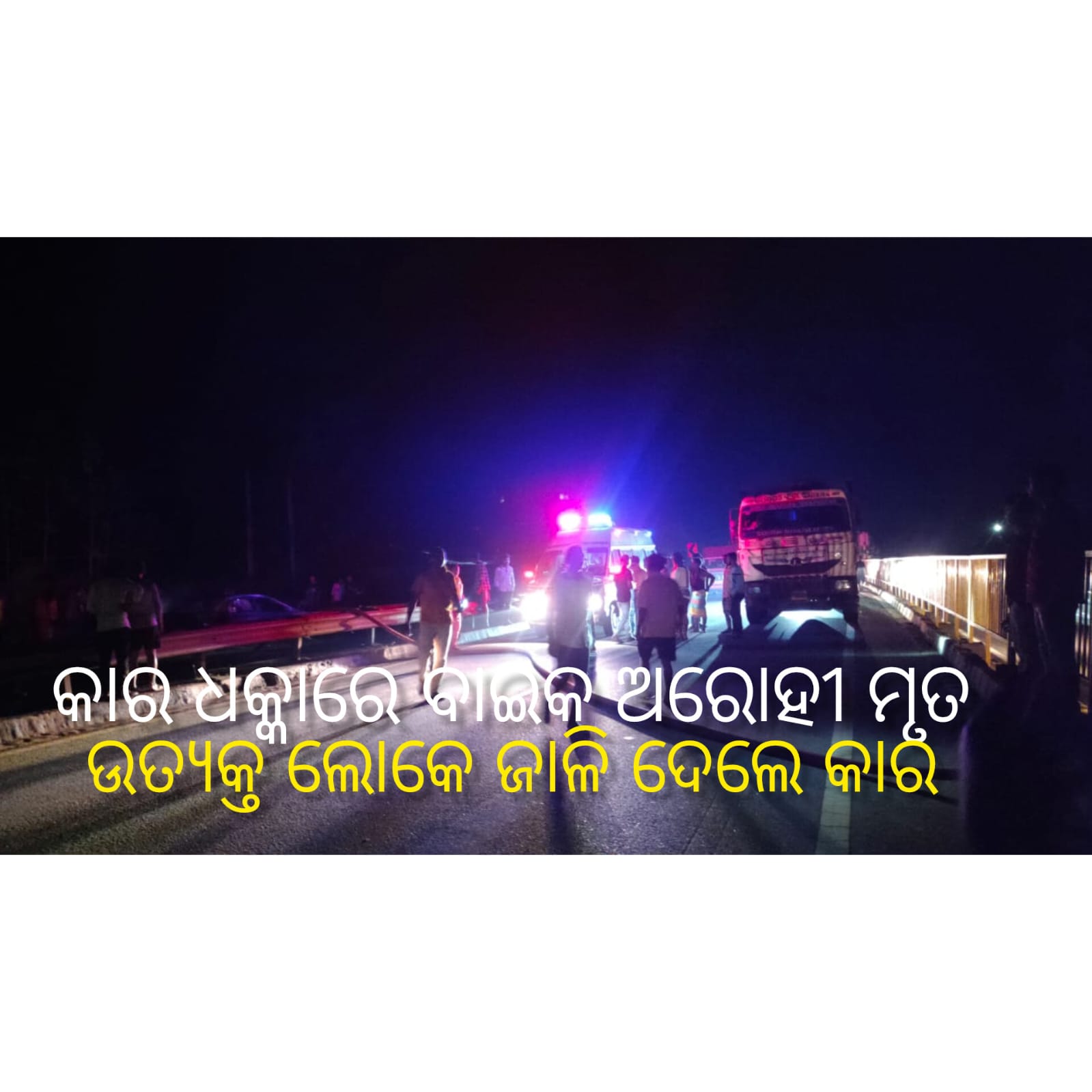 ସୁନ୍ଦରଗଡ : କାର ଧକ୍କାରେ ବାଇକ ଅରୋହୀଙ୍କ ମୃତ୍ୟୁ।। କାର ଜାଳି ଦେଲେ ଉତ୍ୟକ୍ତ ଲୋକେ।। ପୋଲିସ , ଫାୟାର ଟିମ୍ ଘଟଣା ସ୍ଥଳରେ ପହଁଚିଲେ।