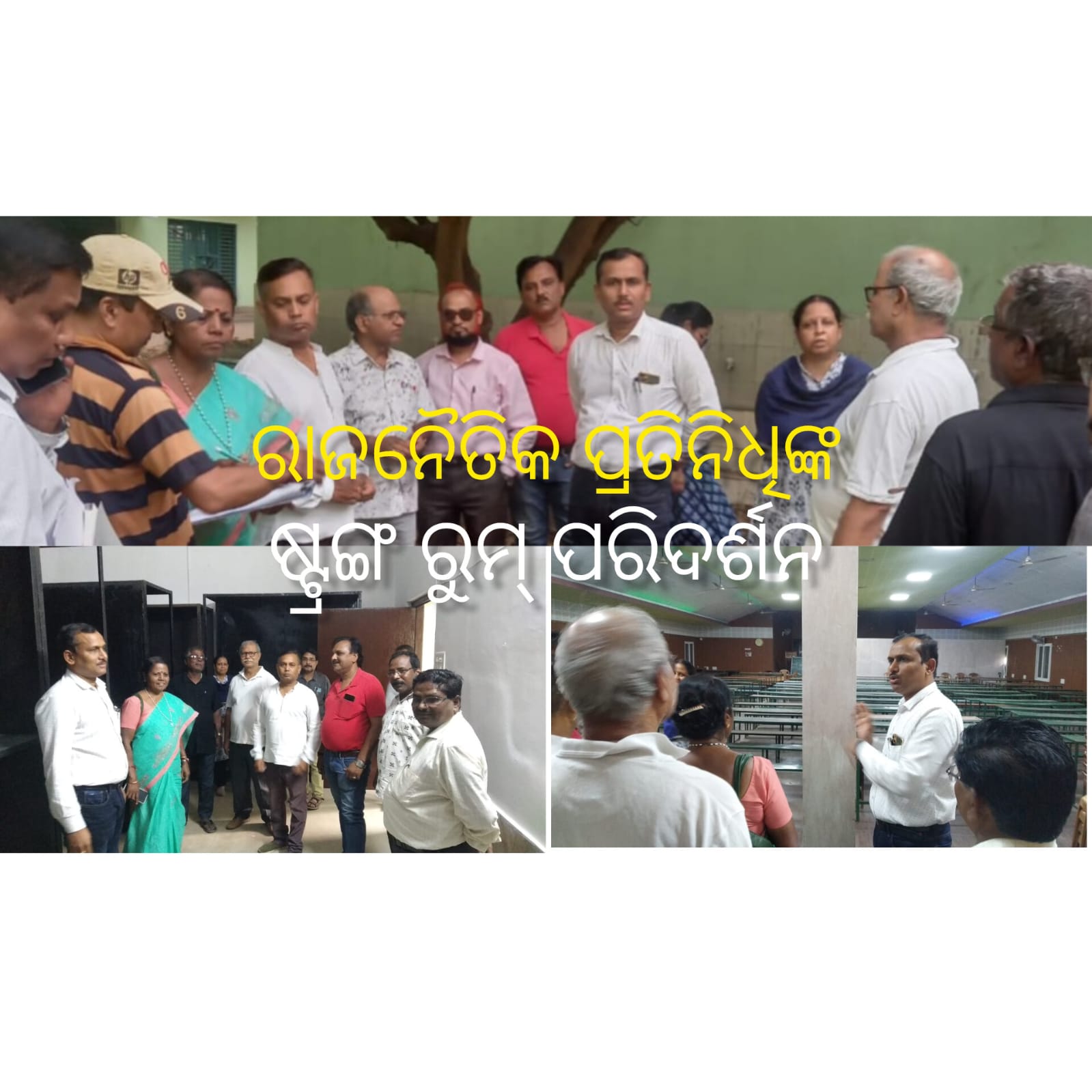 ଇଭିଏମ ରଖିବା ପାଇଁ ବ୍ୟବସ୍ଥା କରା ଯାଇଥିବା ଷ୍ଟ୍ରଙ୍ଗ ରୁମ , ଭୋଟ ଗଣତିର ବ୍ୟବସ୍ଥା ବିଷୟରେ ଅବଗତକରା ଯାଇଥିଲା। ରାଜନୈତିକ ଦଳର ପ୍ରତିନଧି ମାନଙ୍କ ମଧ୍ୟରେ ବିଜେପି ଜିଲ୍ଳା ସଭାପତି ଲତିକା କୁମାରି ପଟ୍ଟନାୟକ, ବିଜେଡି ନଗର ସଭାପତି ଗଗନ ପଣ୍ଡା, ଆଏନସି ର ଜିଲ୍ଲା ସଭାପତି ରବି ରାୟ , ବିଏସପି ଜିଲ୍ଲା ସଭାପତି ରଂଜନ କୁମାର ତନ୍ତୀ , ଆପର ଜିଲ୍ଲା ସଭାପତି ବିନୟ ତିଓ୍ବାରୀ ପ୍ରମୁଖ ଉପସ୍ଥିତ ଥିଲା। ରିଟର୍ଣିଂ ଅଧିକାରୀ ଅତିରିକ୍ତ ଜିଲ୍ଲାପାଳ ଆଶୁତୋଷ କୁଲକର୍ଣ୍ଣି ,ଉପଜିଲ୍ଲାପାଳ ପାନପୋଷ ବିଜୟ ନାୟକ ଓ ଅତିରିକ୍ତ ଉପଜିଲ୍ଲାପାଳ ,ପାନପୋଷ ସରୋଜ ମିଶ୍ର ଏମାନଙ୍କୁ ବ୍ୟବସ୍ଥା ଉପରେ ଅବଗତ କରାଇ ଥିଲେ।