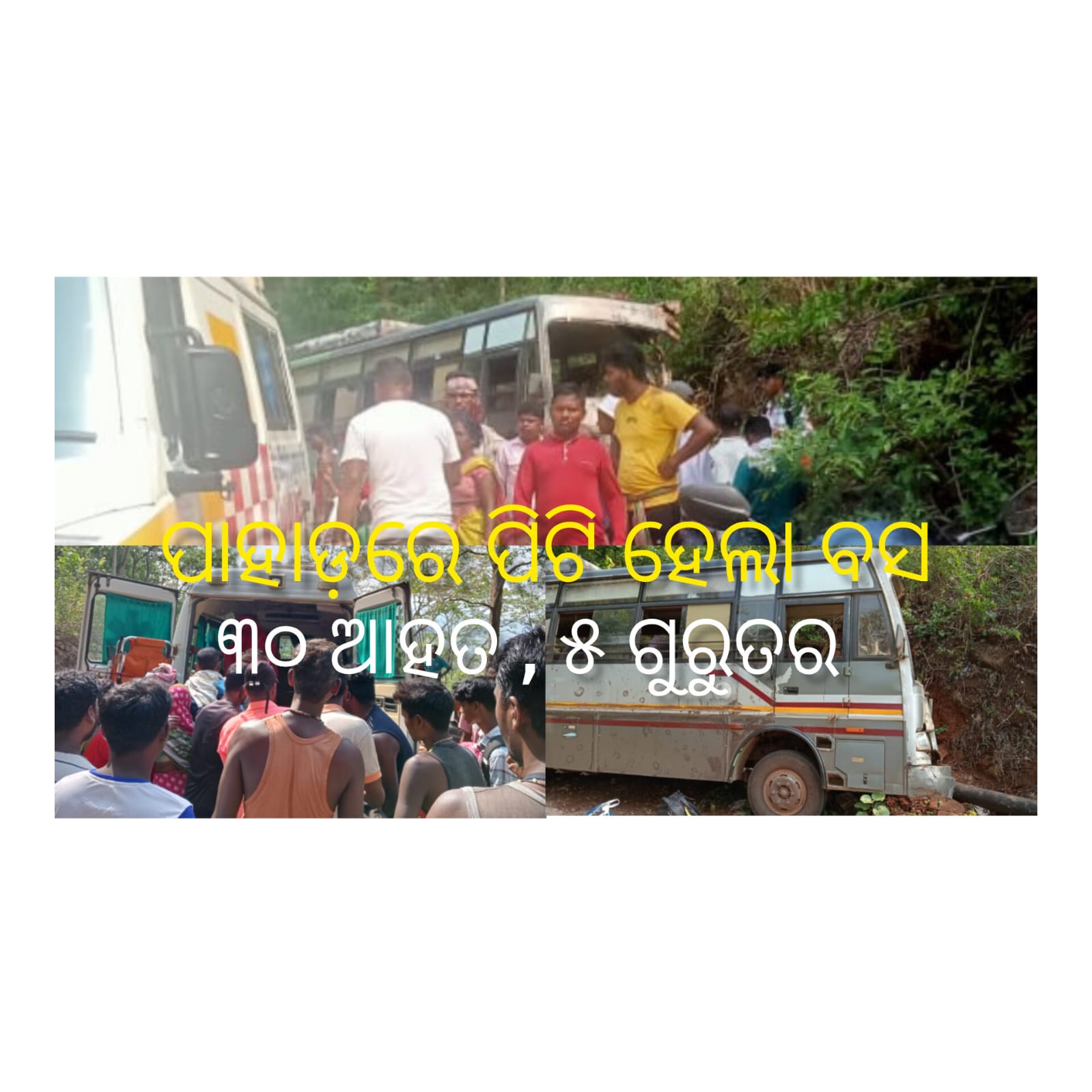ରାଉରକେଲା/ ବଣାଇ ୧୭/୬ (ସତ୍ୟାନ୍ୟୁଜ) ସୁନ୍ଦର ଗଡ଼ ଜିଲ୍ଲା ଗୁରୁଣ୍ଡିଆ ଥାନାର ତlମଡା ନିକଟରେ ଆଜି ସକାଳେ ଏକ ବସ ଦୁର୍ଘଟଣା ଗ୍ରସ୍ତ ହୋଇ ୩୦ ରୁ ଉର୍ଦ୍ଧ୍ବ ଯାତ୍ରୀ ଆହତ ହୋଇଛନ୍ତି। ଆହତ ମାନଙ୍କ ମଧ୍ୟରୁ ୫ ଜଣ ଗୁରୁତର ଅଛନ୍ତି। ସମସ୍ତ ଆହତ ବସ ଯାତ୍ରୀଙ୍କୁ ରାଉରକେଲା ସରକାରୀ ଡାକ୍ତରଖାନା ଚିକିତ୍ସା ପାଇଁ ଅଣାଯାଇଛି। ଆହତଙ୍କ ମଧ୍ୟରେ କେତେଜଣ ଗର୍ଭବତୀ ମହିଳା ଏବଂ ଆଶା କର୍ମୀ ଥିବା ଜଣାପଡିଛି। ବ୍ରେକ୍ ଫେଲ ଯୋଗୁ ବସ ପାହାଡ଼ରେ ପିଟି ହୋଇଯାଇ ଥିବା ଅନୁମାନ କରାଯାଇଛି।