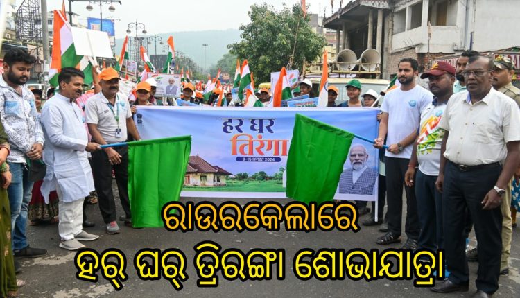 ରାଉରକେଲା : ୧୪/୮(ସତ୍ୟାନ୍ୟୁଜ) ଶାନ୍ତି, ସାହସର ପ୍ରତୀକ ଜାତୀୟ ପତାକାକୁ ସମ୍ମାନ ଦେବା ସହ ଦେଶବାସୀଙ୍କ ମନରେ ରାଷ୍ଟ୍ର ପ୍ରେମ, ରାଷ୍ଟ୍ରଭକ୍ତି ଭାବ ଜାଗ୍ରତ କରିବା ପାଇଁ ସମଗ୍ର ଦେଶରେ ‘ହର୍ ଘର୍ ତ୍ରିରଙ୍ଗା’ କାର୍ଯ୍ୟକ୍ରମ ଆୟୋଜନ କରାଯାଉଛି। ଏହି କ୍ରମରେ ରାଉରକେଲା ମହାନଗର ନିଗମ ତରଫରୁ ମଧ୍ୟ ଏହି ଅଭିଯାନ ଅନ୍ତର୍ଗତ ବିବିଧ କାର୍ଯ୍ୟକ୍ରମ ଆୟୋଜନ କରାଯାଉଛି। ଏହି ପରିପ୍ରେକ୍ଷୀରେ ସ୍ୱାଧୀନତା ଦିବସର ଅବ୍ୟବହିତ ପୂର୍ବରୁ ବୁଧବାର ରାଉରକେଲା ମହାନଗର ନିଗମ ପକ୍ଷରୁ ‘ଘରେ ଘରେ ତ୍ରିରଙ୍ଗା’ ଅଭିଯାନରେ ଏକ ବିଶାଳ ତ୍ରିରଙ୍ଗା ଯାତ୍ରା ଅନୁଷ୍ଠିତ ହୋଇଥିଲା। ରାଉରେକଲା ବିଧାୟକ ସାରଦା ପ୍ରସାଦ ନାୟକ ଓ ରାଉରକେଲା ମହାନଗର ନିଗମ କମିଶନର ଆଶୁତୋଷ କୁଲକର୍ଣ୍ଣି ସବୁଜ ପତାକା ଦେଖାଇ ଏହି ଯାତ୍ରାର ଶୁଭାରମ୍ଭ କରିଥିଲେ।