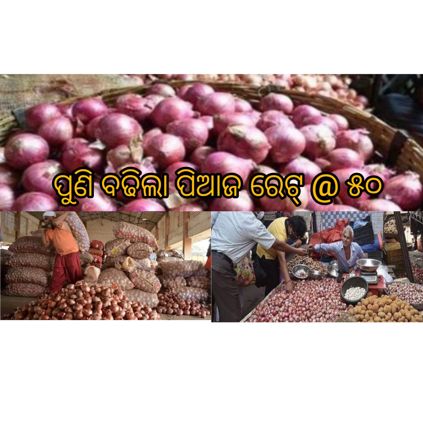 ଦୀର୍ଘ ଦିନ ହେଲା ଆଳୁ କିଲୋ ପିଛା ୪୦ ଟଙ୍କା ଥିବା ବେଳେ ଏହାର ଦର କମୁ ନାହିଁ। ମାତ୍ର ପିଆଜ କିଲୋ ପିଛା ପ୍ରାୟ ୩୫ ଟଙ୍କା ଥିବା ବେଳେ ଦିନେ ଦୁଇ ଦିନ ଭିତରେ କିଲୋ ପ୍ରତି ୧୦ରୁ ୧୫ ଟଙ୍କା ବଢ଼ିଲାଣି । ଏବେ ମାର୍କେଟରେ ଛୋଟ ସାଇଜ୍ ପିଆଜ କିଲୋଗ୍ରାମ ପ୍ରତି ୪୫ ଟଙ୍କାରେ ମିଳୁ ଥିବା ବେଳେ ବଡ ପିଆଜ ୫୦ ଟଙ୍କାରେ ବିକ୍ରି ହେଉଛି।