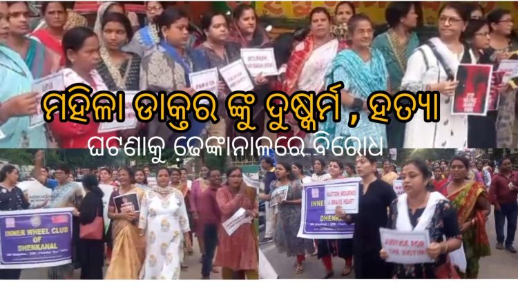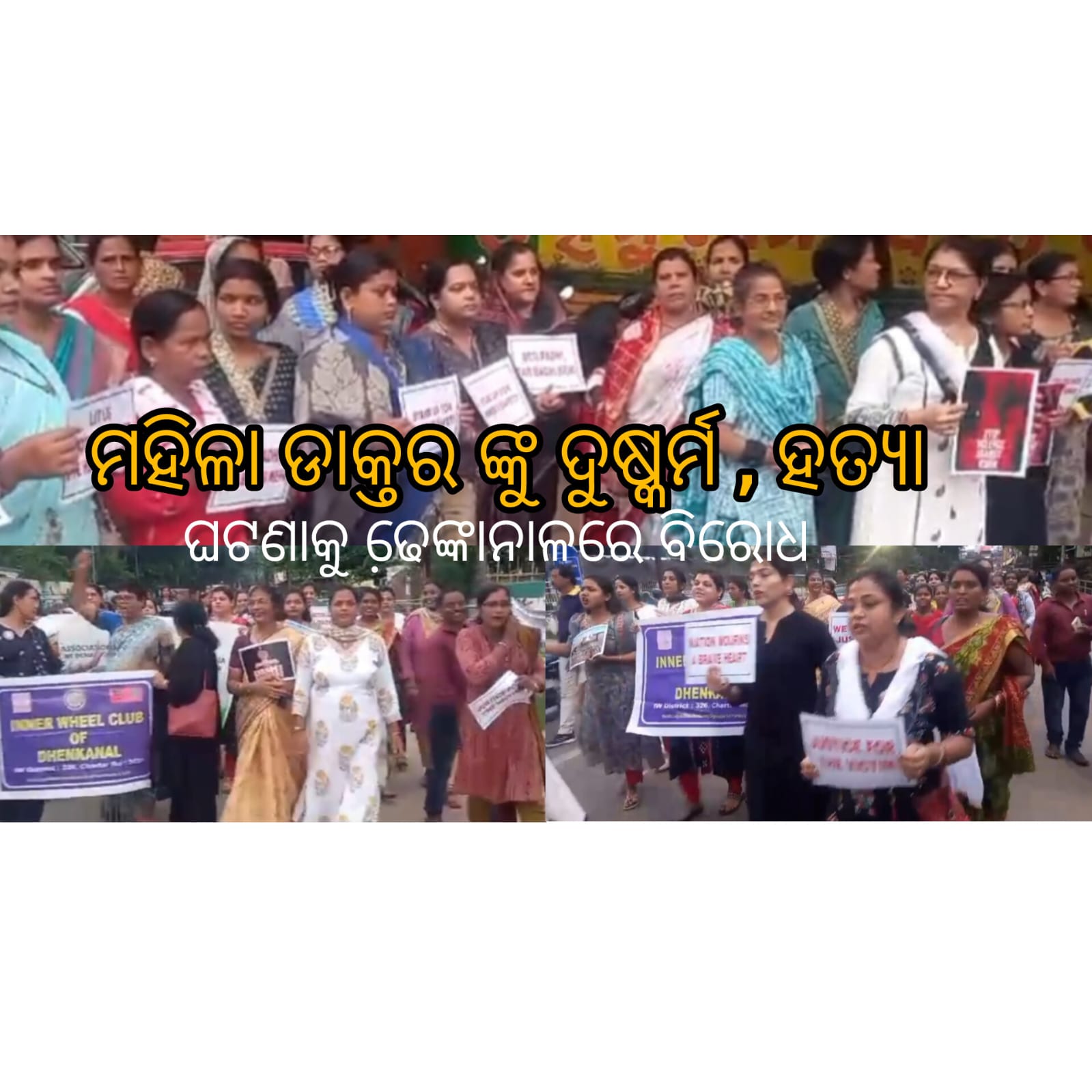 ଢେଙ୍କାନାଳ : ମହିଳା ଡାକ୍ତରଙ୍କୁ ଦୁଷ୍କର୍ମ , ହତ୍ୟା ଘଟଣାର ବିରୋଧ।। ଢେଙ୍କାନାଳ ଇନର ହ୍ବିଲ୍ କ୍ଲବ୍ ତରଫରୁ ପ୍ରତିବାଦ ଶୋଭାଯାତ୍ରା।