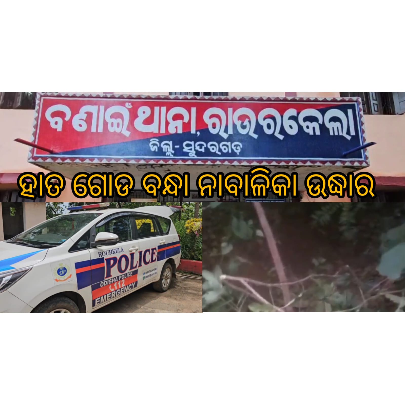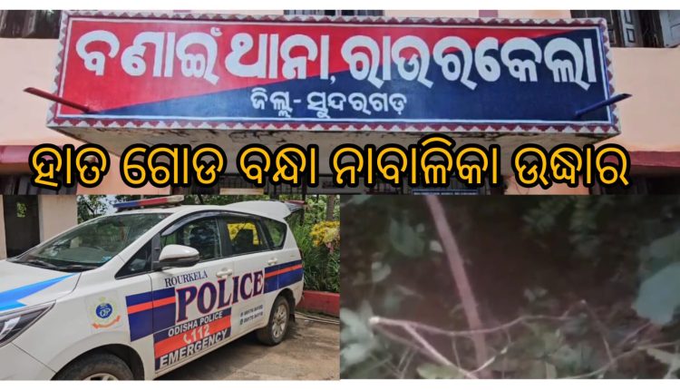 ବଣାଇ : ଜଙ୍ଗଲରୁ ମୂର୍ମୂଷ ଅବସ୍ଥାରେ ହାତ ଗୋଡ଼ ବନ୍ଧା ଅବସ୍ଥାରେ ଗର୍ଭବତୀ ନାବାଳିକା ଉଦ୍ଧାର।। ରାଉରକେଲା ରେ ଚାଲିଛି ଚିକିତ୍ସା ।। ସନ୍ଦେହ ଘେର ରେ ଥିବା ଗ୍ରାମ ସାଥୀ ଫେରାର।