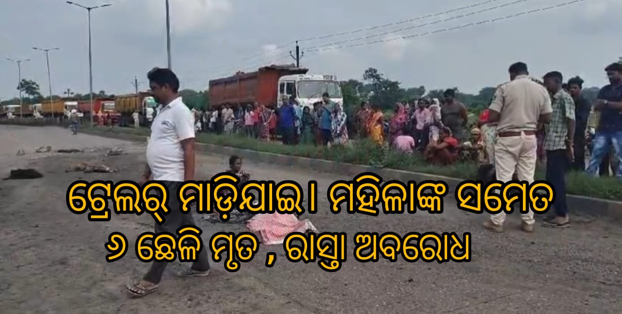 ସୁନ୍ଦରଗଡ଼ ଟାଉନ୍ ଥାନା ଅର୍ନ୍ତଗତ ଅମଲିପାଲି ବାଇପାସ୍ ନିକଟ ରାସ୍ତାରେ ଏକ ଦ୍ରୁତ ଗାମୀ ଟ୍ରେଲର ଡିଭାଇଡର୍ ଡେଇଁ ମାଡ଼ି ଯିବା ଫଳରେ ଘଟଣା ସ୍ଥଳରେ ଜଣେ ମହିଳାଙ୍କ ମୃତ୍ୟୁ ହୋଇଥିବା ବେଳେ ୬ ଟି ଛେଳି ମୃତ୍ୟୁ ବରଣ କରିଛନ୍ତି। କ୍ଷତିପୂରଣ ଏବଂ ଦ୍ରୁତ ଗତି ରେ ଗାଡ଼ି ଚାଳନା ରୋକିବା ଦାବିରେ ସ୍ଥାନୀୟ ଲୋକେ ରାସ୍ତା ଅବରୋଧ କରିଛନ୍ତି। ମୃତକ ମହିଳା ଗୁରୁବାରି ବାଗ୍ ବୋଲି ଜଣା ପଡିଛି। ଘଟଣା ସ୍ଥଳରେ ପୋଲିସ ପହଞ୍ଚି ଲୋକଙ୍କୁ ବୁଝାସୁଝା କରୁଛି। ଆଜି ପୂର୍ବାହ୍ନ ରେ ମହିଳା ଜଣଙ୍କ ଛେଳି ନେଇ ଘରକୁ ଫେରୁଥିବା ବେଳେ ଏହି ଦୁର୍ଘଟଣା ଘଟିଥିଲା। ଟ୍ରେଲର ଟି ଦ୍ରୁତ ଗତିରେ ବିପରୀତ ଦିଗରୁ ମାଡ଼ି ଆସି ଡିଭାଇଡର୍ ଡେଇଁ ଦୁର୍ଘଟଣା ଘଟାଇ ଥିଲା।