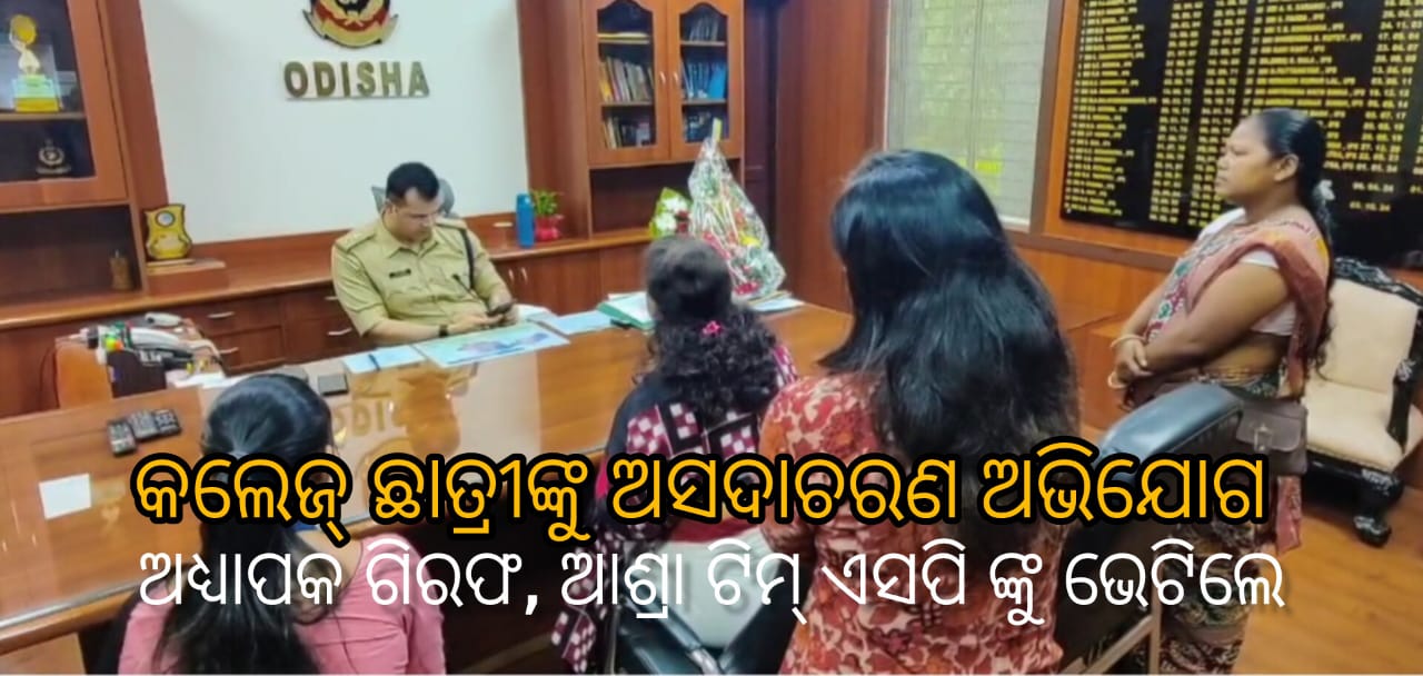 ରାଉରକେଲା : ଛାତ୍ରୀଙ୍କୁ ଅସଦାଚରଣ କରିଥିବା ଅଭିଯୋଗରେ ଅଧ୍ୟାପକ ଗିରଫ।। ଘଟଣାର ଅଧିକ ତଦନ୍ତ ପାଇଁ ଆଶ୍ରା ସଙ୍ଗଠନ ଏସପି ଙ୍କୁ ଭେଟିଲେ।