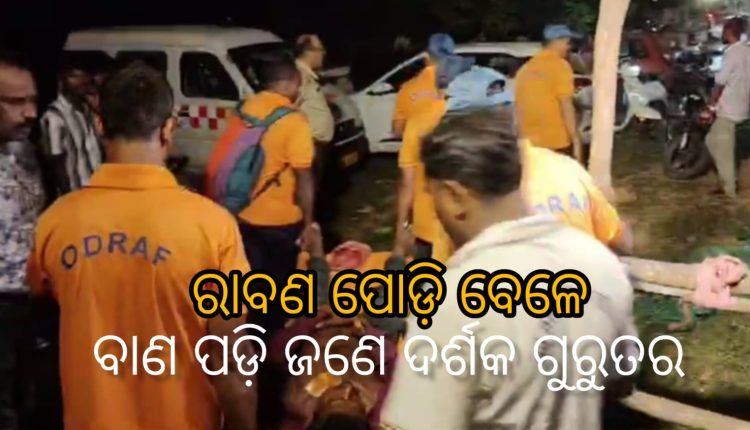 ରାଉରକେଲା : ୧୨/୧୦ (ସତ୍ୟାନ୍ୟୁଜ) ରାଉରକେଲା ୧୩ ନମ୍ବର ସେକ୍ଟର ମେଲଣ ପଡ଼ିଆରେ ଆଜି ରାବଣ ପୋଡ଼ି କାର୍ଯ୍ୟକ୍ରମରେ ଏକ ଅଘଟଣ ଘଟି ଜଣେ ଦର୍ଶକ ଆହତ ହୋଇଛନ୍ତି। ଆହତ ବ୍ୟକ୍ତିଙ୍କୁ ଆଇ ଜି ଏଚ୍ ରେ ଭର୍ତ୍ତି କରାଯାଇଛି। ମିଳିଥିବା ସୂଚନା ଅନୁଯାୟୀ ରାବଣ ପୋଡ଼ି ସମୟରେ ଆତସବାଜି କାର୍ଯ୍ୟକ୍ରମ ହୋଇଥିଲା। ଏହି ସମୟରେ ଏକ ବଡ଼ ଚକ୍ରି ବାଣ ବାଉଁଶରୁ ବାହାରି ଯାଇ ଜଣେ ଦର୍ଶକ ଙ୍କ ଛାତି ରେ ବାଜି ଥିଲା। ଉକ୍ତ ବ୍ୟକ୍ତି ଘଟଣା ସ୍ଥଳରେ ପଡ଼ି ଯାଇଥିଲେ। ଆହତ ବ୍ୟକ୍ତିଙ୍କୁ ସ୍ବେଚ୍ଛାସେବୀ ଏବଂ ଫାୟାର ଟିମ୍ ଉଦ୍ଧାର କରି ତୁରନ୍ତ ହସ୍ପିଟାଲ ପଠାଇଥିଲେ।