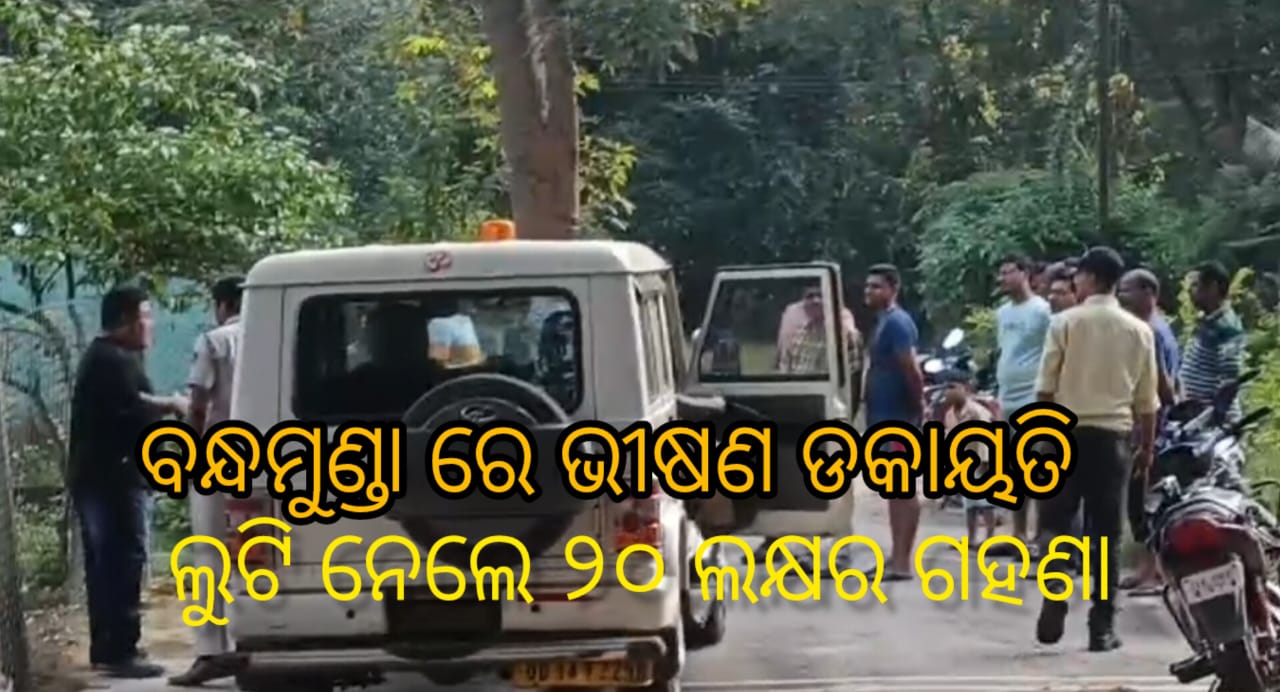 ରାଉରକେଲା : ବନ୍ଧମୁଣ୍ଡା ରେ ଭୀଷଣ ଡକାୟତି।। ରେଳବାଇ ଜେ ଇ ଙ୍କ ଘରେ ଡକାୟତି।। ହାତ ଗୋଡ ବାନ୍ଧି ଲୁଟି ନେଲେ ୨୦ ଲକ୍ଷ ଟଙ୍କାର ଗହଣା।
