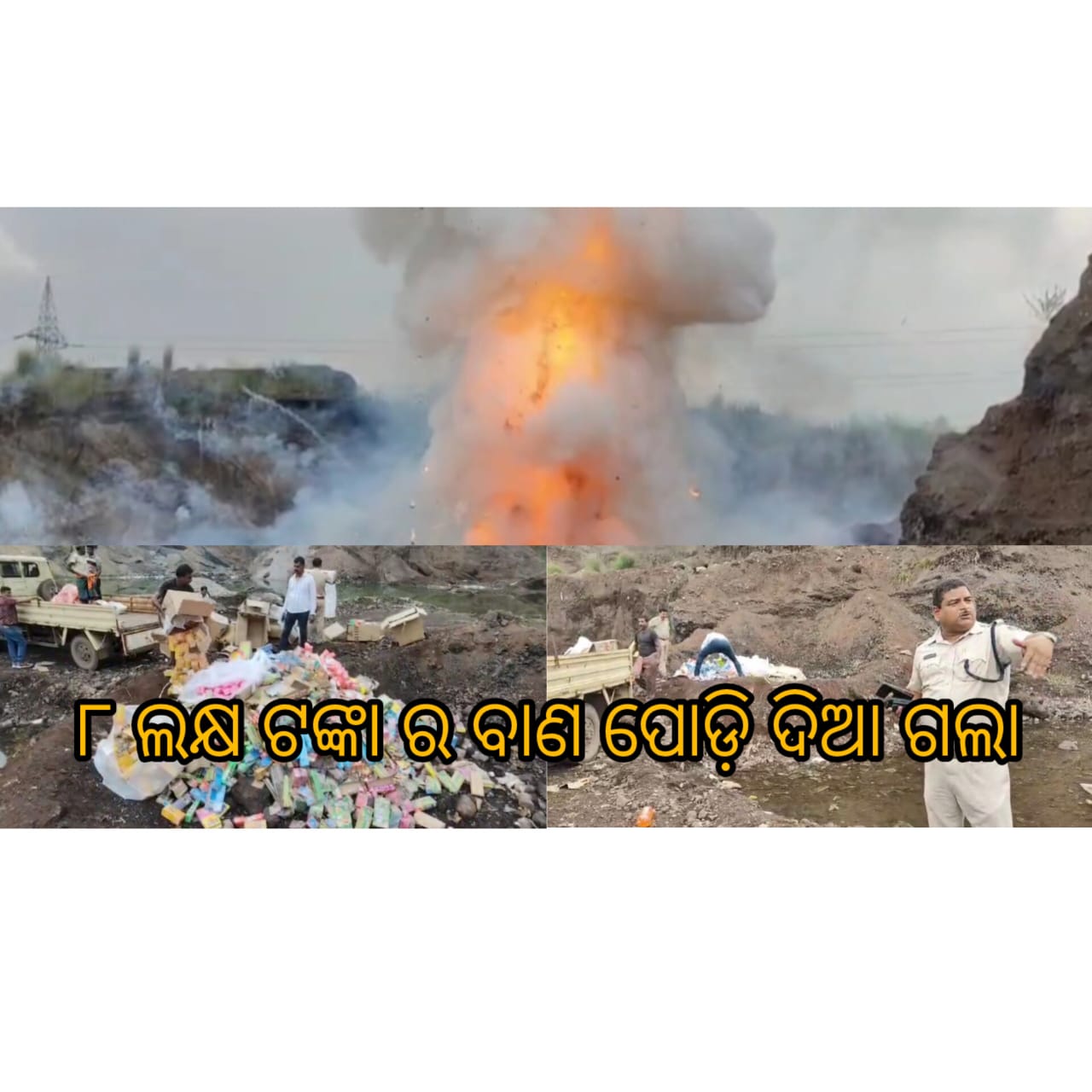ରାଉରକେଲା : ପ୍ଲାଣ୍ଟ ସାଇଟ୍ ରୋଡ ରୁ ୮ ଲକ୍ଷ ଟଙ୍କାର ବେଆଇନ୍ ବାଣ ଜବତ।। ସବୁ ବାଣ କୁ ନିଆଁ ଲଗାଇ ନଷ୍ଟ କରି ଦିଆଗଲା।