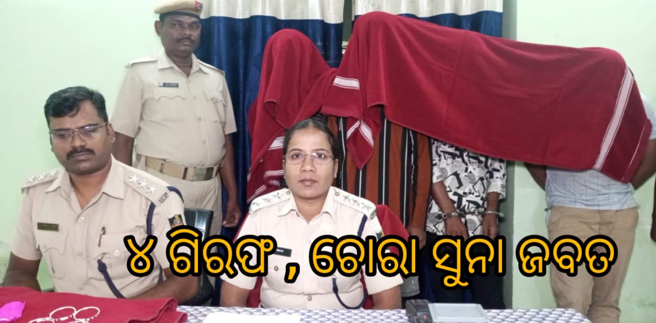 ରାଉରକେଲା : ଘର ତାଲା ଭାଙ୍ଗି ଚୋରି କରୁଥିବା ଗ୍ୟାଙ୍ଗ ର ୩ ସଦସ୍ୟ ଗିରଫ।। ଚୋରା ସୁନା କିଣିବା ଅଭିଯୋଗରେ ଜୁଏଲର ମାଲିକ ଗିରଫ