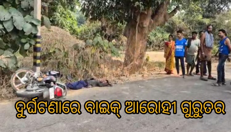 ବଣାଇ : ୨୪/୧୧(ସତ୍ୟାନ୍ୟୁଜ୍) ବଣେଇ ଥାନା ଅନ୍ତର୍ଗତ ଜକେଇକଳା ଗ୍ରାମରେ ବାଇକ୍ ଦୁର୍ଘଟଣା ରେ ଜଣେ ବ୍ୟକ୍ତି ଗୁରୁତର ଭାବେ ଆହତ ହୋଇଛନ୍ତି।