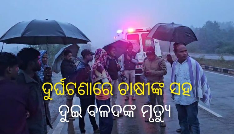 ବଣାଇ : ଅଜଣା ଗାଡ଼ି ଧକ୍କାରେ ଚାଷୀଙ୍କ ସହ ଦୁଇଟି ବଳଦଙ୍କ ମୃତ୍ୟୁ।। ୧୪୩ ନମ୍ବର ରାଜପଥରେ ଘଟିଛି ଦୁର୍ଘଟଣା।। ଗାଡ଼ି ନେଇ ଡ୍ରାଇଭର ଫେରାର।
