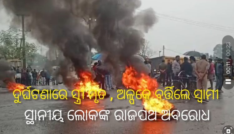 ସୁନ୍ଦରଗଡ : ୧୦ ନମ୍ୱର୍ ରାଜ୍ୟ ରାଜପଥ ରେ ଟ୍ରେଲର ମାଡ଼ି ଯିବାରୁ ମହିଳା ମୃତ।। ଅଳ୍ପକେ ବତ୍ତିଲେ ସ୍ବାମୀ।। ସ୍ଥାନୀୟ ଲୋକଙ୍କ ରାସ୍ତା ରୋକ।