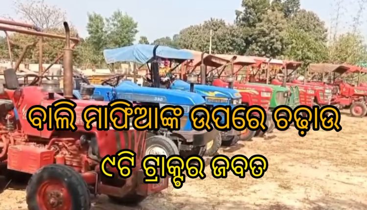 ରାଉରକେଲା : ନଦୀ ପଠାରୁ ବେଆଇନ୍ ଭାବେ ବାଲି ଉଠାଇଥିବା ବେଳେ ୯ଟି ଟ୍ରାକ୍ଟର ଜବତ।। ଡ୍ରାଇଭର ମାନେ ଅଟକ।। ବନ ବିଭାଗ ପକ୍ଷରୁ ଚଢ଼ାଉ ।