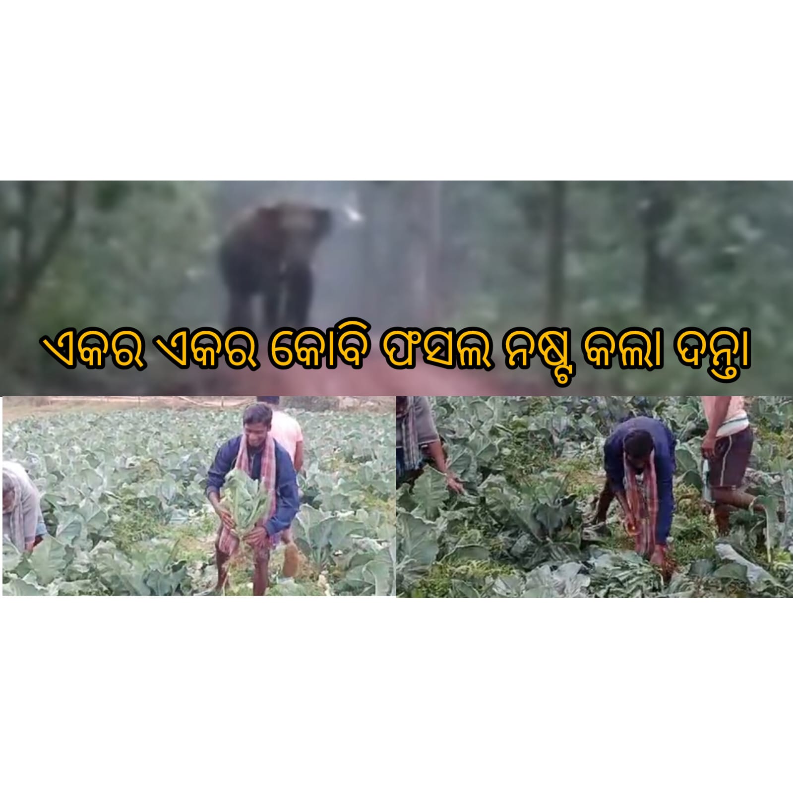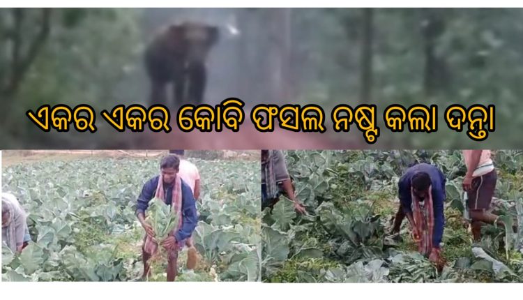 ବଣାଇ : ଏକର ଏକର କୋବି ଫସଲ ନଷ୍ଟ କଲା ଦନ୍ତାହାତୀ। ଦନ୍ତା ଉପଦ୍ରବରେ ଅତିଷ୍ଠ ଗ୍ରାମବାସୀ ସୋଲାର୍ ବାଡ ଲଗାଇବା ଦାବି କଲେ।