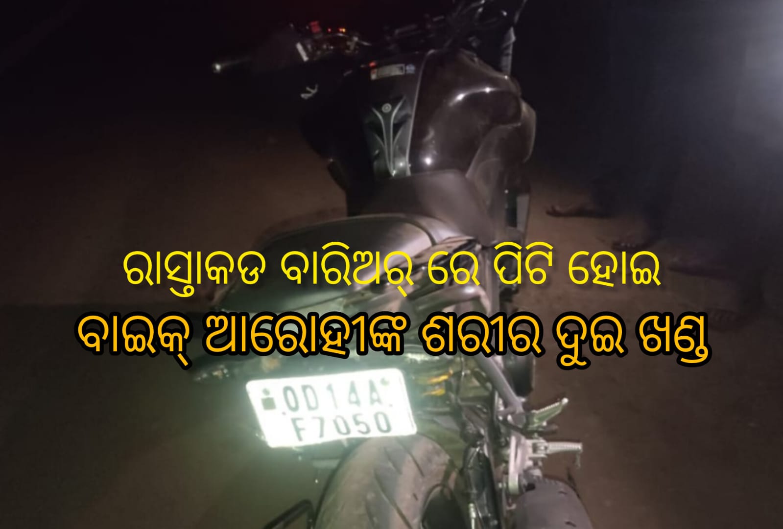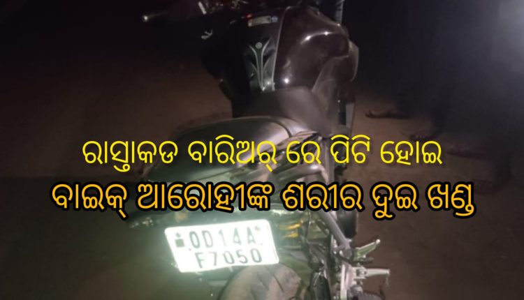 ବାରିଅର୍ ରେ ପିଟି ହୋଇ ଯାଇଥିଲେ। ଦୁର୍ଘଟଣା ଏତେ ଭୟଙ୍କର ଥିଲାଯେ ବାଇକ୍ ଆରୋହୀ ଙ୍କ ଶରୀର ମଝିରୁ ଦୁଇ ଖଣ୍ଡ ହୋଇ ଯାଇଥିଲା।