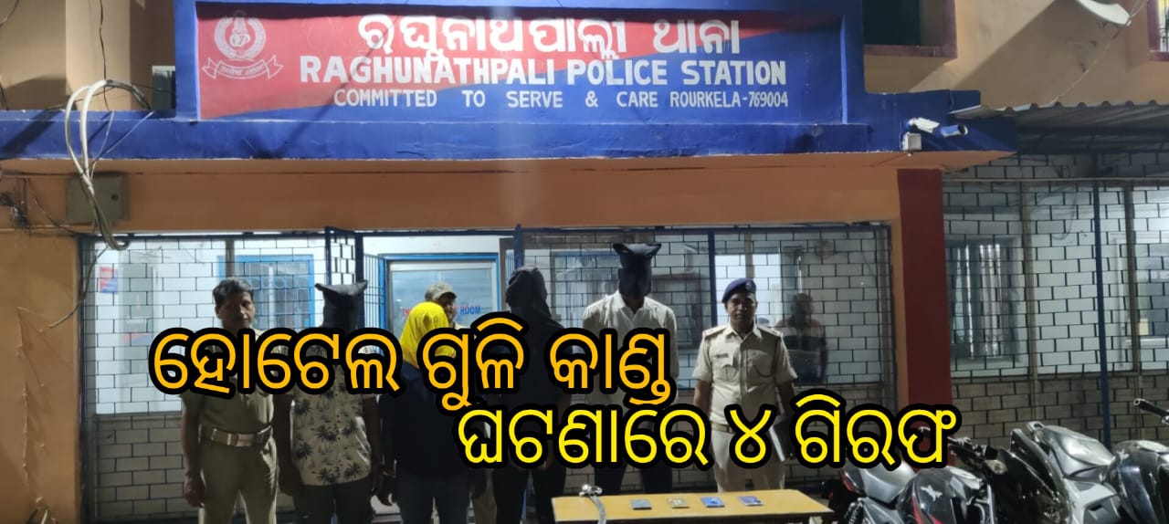 ରାଉରକେଲା : ୩୧/୩(ସତ୍ୟାନ୍ୟୁଜ) ରାଉରକେଲା ରଘୁନାଥପାଲି ଥାନା ଅନ୍ତର୍ଗତ ଦେଓଗାଁ ମା ତାରିଣୀ ହୋଟେଲ ଗୁଳି କାଣ୍ଡ ଘଟଣାରେ ପୋଲିସ ୪ ଜଣ ଯୁବକଙ୍କୁ ଗିରଫ କରିବାରେ ସଫଳ ହୋଇଛି। ପୋଲିସ ଅଭିଯୁକ୍ତଙ୍କ ନିକଟରୁ ୪ଟି ବାଇକ୍ , ଗୋଟିଏ ଆମ୍ବୁଲାନ୍ସ , ଗୋଟିଏ ଖଣ୍ଡା ,