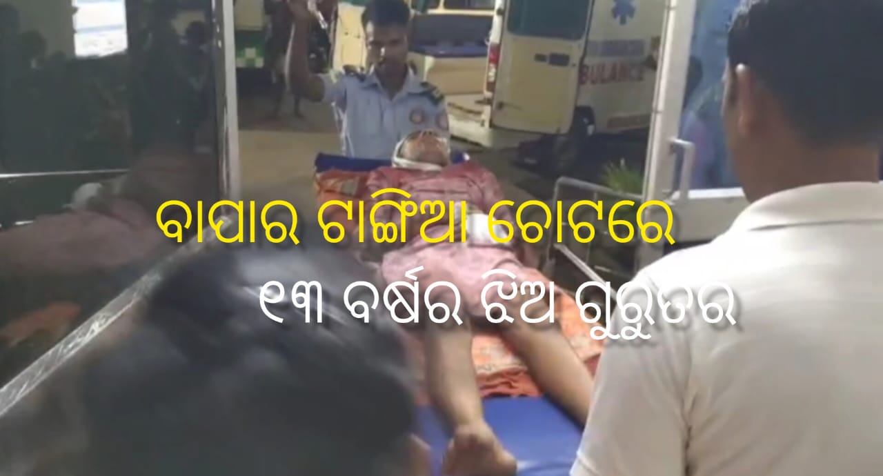 ରାଉରକେଲା : ମା କୁ ବଞ୍ଚାଇବା ବେଳେ ବାପାର ଟାଙ୍ଗିଆ ଚୋଟରେ ୧୩ ବର୍ଷୀୟ ଝିଅ ଗୁରୁତର।। ରାଉରକେଲା ସରକାରୀ ଡାକ୍ତରଖାନାରେ ଭର୍ତ୍ତି।।
