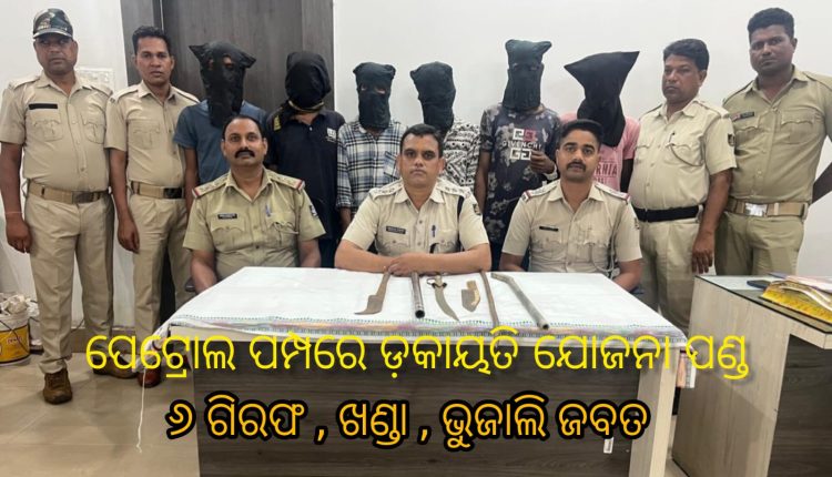 ରାଉରକେଲା : ପେଟ୍ରୋଲ ପମ୍ପ ରେ ଡକାୟତି ଯୋଜନା ପଣ୍ଡ।। ପ୍ଲାଣ୍ଟ ସାଇଟ୍ ଥାନା ପୋଲିସ୍ ୬ ଦୁର୍ବୃତ୍ତଙ୍କୁ ଗିରଫ କଲା।। ଖଣ୍ଡା , ଭୁଜାଲି ଆଦି ମାରଣାସ୍ତ୍ର ଜବତ।