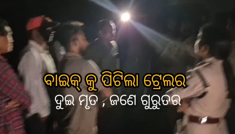 ସୁନ୍ଦରଗଡ଼:୨୩/୬(ସତ୍ୟାନ୍ୟୁଜ) ସୁନ୍ଦରଗଡ଼ ଜିଲ୍ଲା ବାଙ୍କିବାହାଲ – ଭେଡାବାହାଲ କୋଲ୍ କରିଡର୍ ରାସ୍ତାରେ ଗତକାଲି ବିଳମ୍ବିତ ରାତିରେ ଏକ ମର୍ମନ୍ତୁଦ ସଡ଼କ ଦୁର୍ଘଟଣାରେ ଦୁଇ ଜଣ ଯୁବକଙ୍କ ମୃତ୍ୟୁ ଘଟିଛି । ଅନ୍ୟ ଜଣେ ଯୁବକ ଗୁରୁତର ଆହତ ହୋଇଛନ୍ତି। ରାତିରେ ଭଷ୍ମା ଥାନା ବ୍ରାହ୍ମଣୀପାଲି ନିକଟରେ ଟ୍ରଲର ବାଇକ ଧକ୍କା ହେବା ଫଳରେ ଏହି ଦୁଃଖଦ ଘଟଣା ଘଟିଛି। ଗୁରୁତର ଆହତ ଯୁବକ ବିକାଶ ନାଏକଙ୍କୁ ଅଧିକ ଚିକିତ୍ସା ପାଇଁ ରାଉରକେଲା ପଠା ଯାଇଥିବା ଜଣାପଡିଛି।