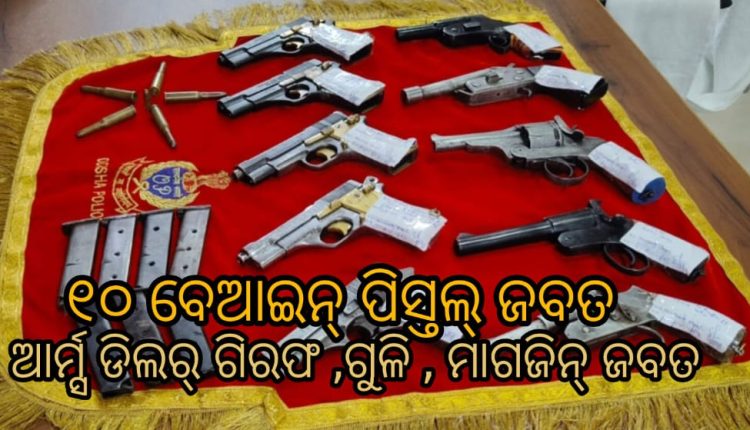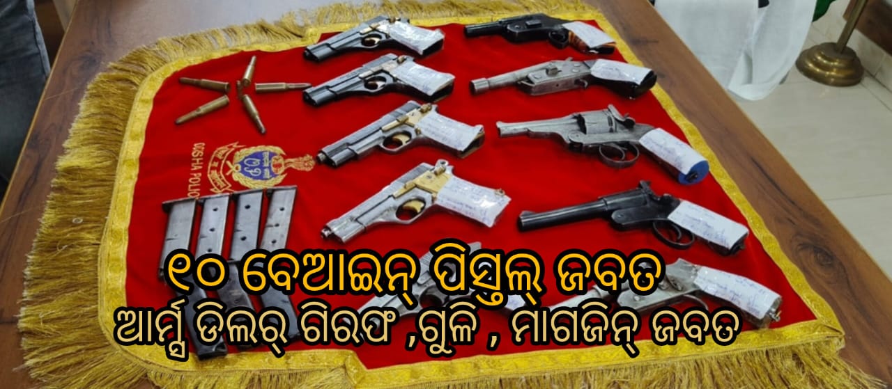 ରାଉରକେଲା : ୧୦ ଟି ବେଆଇନ୍ ପିସ୍ତଲ୍ ଜବତ କଲା ପ୍ଲାଣ୍ଟ ସାଇଟ୍ ଥାନା ପୋଲିସ୍।। ଚୋରା ବନ୍ଧୁକ ବିକ୍ରି ଉଦ୍ୟମ କରୁଥିବା ବେଳେ ମାଡ଼ି ବସିଲା ପୋଲିସ୍।