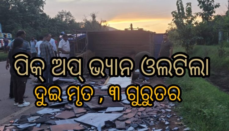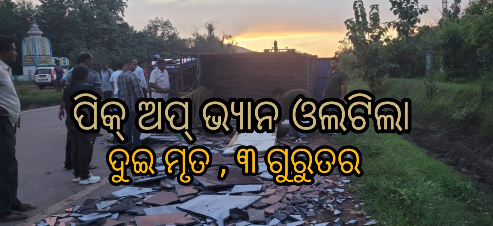 ରାଉରକେଲା:୧୬/୮(ସତ୍ୟାନ୍ୟୁଜ) ଆଜି ଅପରାହ୍ନରେ ଦୁଇଟି ପୃଥକ୍ ଦୁର୍ଘଟଣାରେ ୧୪୩ ନମ୍ୱର୍ ଜାତୀୟ ରାଜପଥରେ ୨ ଜଣଙ୍କ ମୃତ୍ୟୁ ହୋଇଥିବା ବେଳେ ୪ ଜଣ ଗୁରୁତର ଅଛନ୍ତି। ଚାନ୍ଦିପୋଷ ଥାନା ଅନ୍ତର୍ଗତ ୧୪୩ ନମ୍ୱର୍ ଜାତୀୟ ରାଜପଥ ବିରତୋଳା ପଥପ୍ରାନ୍ତ ବିଶ୍ରାମ ଗୃହ ସମ୍ମୁଖରେ ଏକ ଟାଇଲ ବୋଝେଇ ପିକ ଅପ୍ ଭ୍ୟାନ ଓଲଟି ପଡିବାରୁ ଡାଲା ଉପରେ ବସିଥିବା ୨ ଜଣ ମୃତ୍ୟୁ ବରଣ କରିଛନ୍ତି। ଘଟଣା ସ୍ଥଳରେ ଦୁଇ ଜଣ ଙ୍କ ମୃତ୍ୟ ହୋଇଥିବା ବେଳେ ଚାଳକ ଗୁରୁତର ଥିବା ଜଣାପଡିଛି।