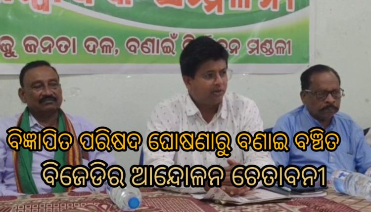 ବଣାଇ : ବିଜ୍ଞାପିତ ଅଞ୍ଚଳ ପରିଷଦ ଘୋଷଣା ରୁ ବଣାଇ ବଞ୍ଚିତ।। ଆନ୍ଦୋଳନ ଧମକ ଦେଲା ବିଜେଡି।। ନିଷ୍ପତ୍ତି ର ପୁନର୍ବିଚାର ଦାବି।