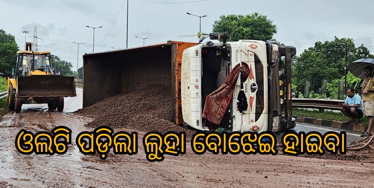 ହାଇବା ଗାଡିଟି ଯାଉଥିବା ବେଳେ ଡିଭାଇଡର୍ ଉପରେ ଚଢ଼ି ଯାଇ ନିୟନ୍ତ୍ରଣ ହରାଇଥିଲା। ଏହା ପରେ ଆଇରନ ଚିପ୍ସ ବୋଝେଇ ଗାଡ଼ିଟି ଓଲଟି ପଡିଥିଲା।