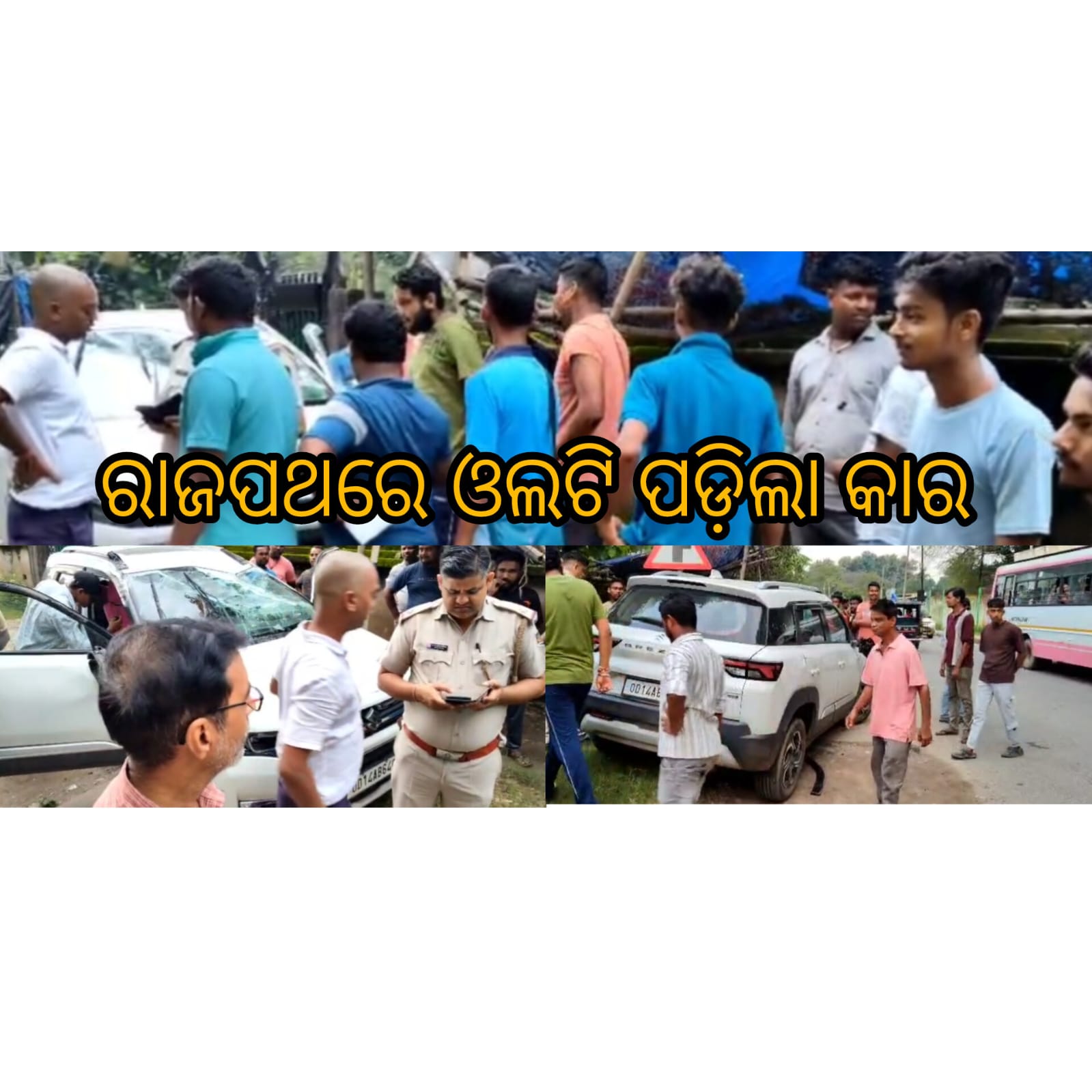 ବିରମିତ୍ରପୁର : ୧୪୩ ନମ୍ୱର୍ ଜାତୀୟ ରାଜପଥ ଚର୍ଚ୍ଚ ନିକଟରେ ଓଲଟି ପଡ଼ିଲା କାର।। ଅଳ୍ପକେ ବର୍ତ୍ତିଲେ କାର ରେ ଥିବା ବ୍ୟକ୍ତି ଏବଂ ଚାଳକ।