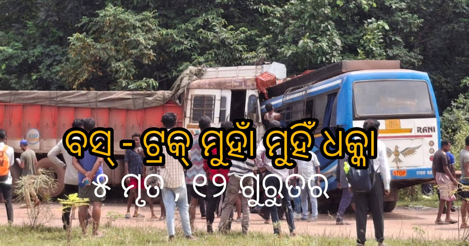 ଫଳରେ ଘଟଣା ସ୍ଥଳରେ ୫ ବସ୍ ଯାତ୍ରୀଙ୍କ ମୃତ୍ୟୁ ହୋଇଥିବା ବେଳେ ବହୁ ଯାତ୍ରୀ ଗୁରୁତର ଆହତ ହୋଇଛନ୍ତି। ଘଟଣା ସ୍ଥଳରେ ପୁଲିସ ଓ ଅଗ୍ନିଶମ ବାହିନୀ ପହଞ୍ଚି ଉଦ୍ଧାର କାର୍ଯ୍ୟ ଜାରି ରଖିଛନ୍ତି। ବସ୍ ଝରକାକୁ କଟର୍ ସାହାଯ୍ୟରେ କାଟି ଯାତ୍ରୀମାନଙ୍କୁ ବାହାର କରା ଯାଉଛି। ଏହି ଘଟଣା ସର ଅଞ୍ଚଳରେ ଶୋକ ର ଛାୟା ଖେଳ ଦେଇଛି।