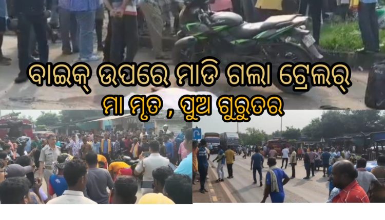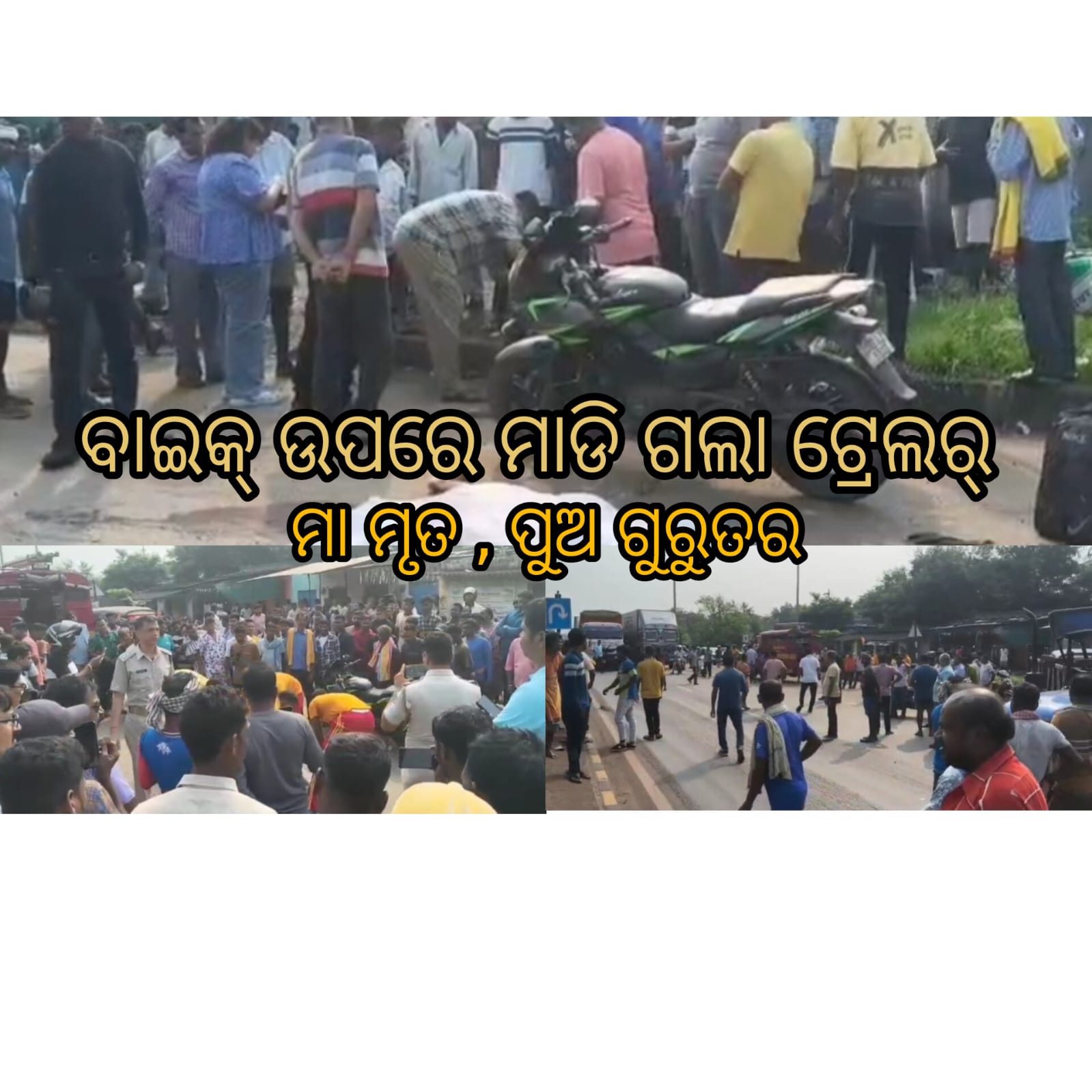 କୁତ୍ରା ଥାନା ଗଡ଼ପୋଷ ଛକ ନିକଟରେ ମର୍ମନ୍ତୁଦ ସଡ଼କ ଦୁର୍ଘଟଣା । ମା ମୃତ, ପୁଅ ଗୁରୁତର ।
