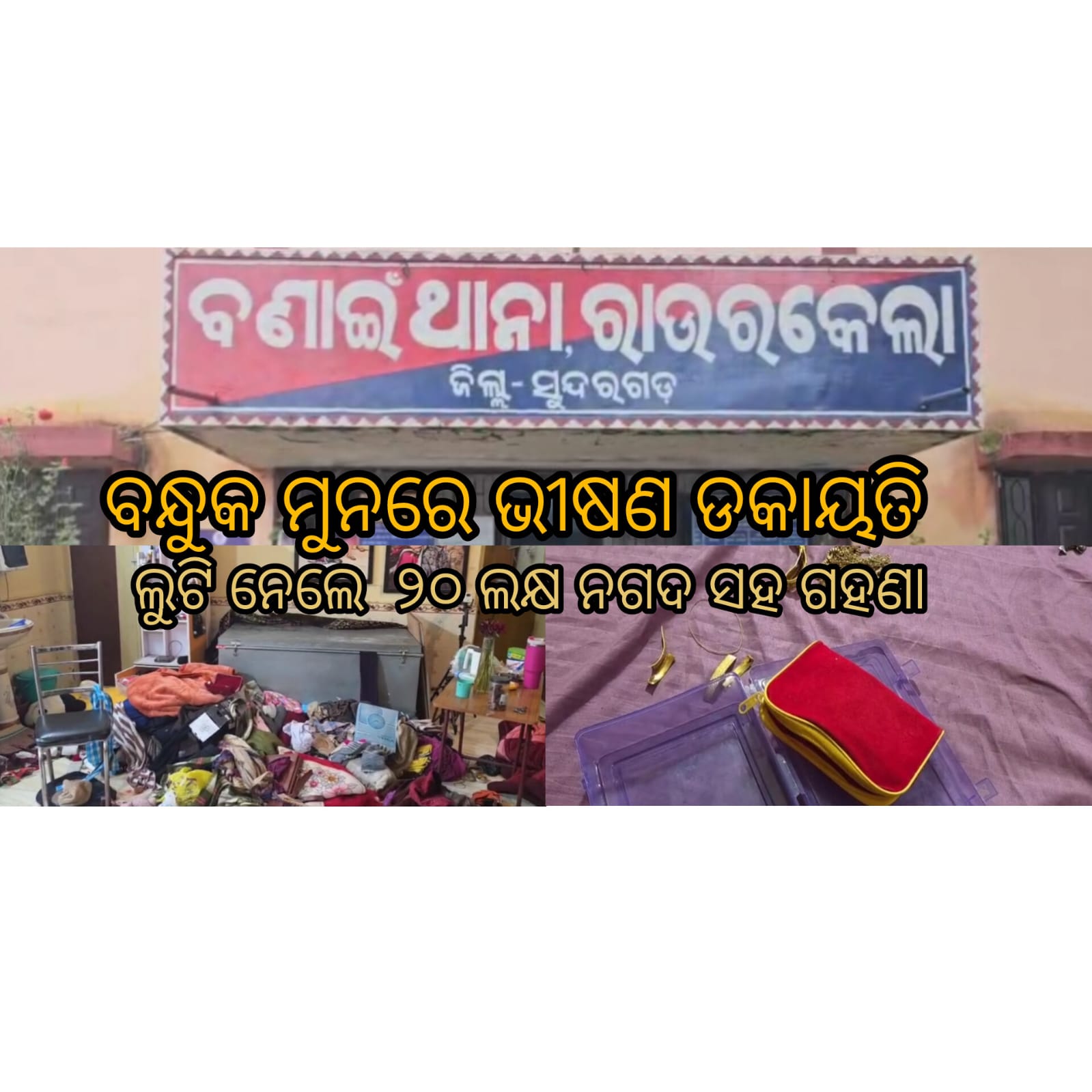 ଏହି ଡକାୟତି ଘଟଣା ଘଟିଛି ସୁନ୍ଦରଗଡ଼ ଜିଲ୍ଲା ବଣାଇ ଟାଉନ୍ ରେ ଥିବା ଅଶ୍ଵିନୀ ଇଲେକ୍ଟ୍ରିକ୍ ଦୋକାନ ମାଲିକଙ୍କ ଘରେ। ରବିବାର ରାତି ପ୍ରାୟ ସାଢେ଼ ୧୨ଟା ସମୟରେ ହାତରେ ପିସ୍ତଲ୍ ଧରି ୫ ଜଣ ମୁଖା ପିନ୍ଧା ଡକାୟତ ଘରେ ପଶି ଯାଇଥିଲେ। ବନ୍ଧୁକ ମୁନରେ ଦୋକାନର କର୍ମଚାରୀଙ୍କୁ ଧମକ ଦେଇ ଘର ଖୋଲା କରାଇଥିଲେ। ପରେ ଉପର ମହଲା ରେ ରହୁଥିବା ଘର ମାଲିକାଣୀ ଏବଂ ତାଙ୍କ ଝିଅ କୁ କାବୁ କରି ବାନ୍ଧି ପକାଇଥିଲେ । ପ୍ରାୟ ୩ ଘଣ୍ଟା ଧରି ଲୁଟ୍ ପାଟ୍ କରିବା ପରେ ଘରେ ଥିବା ସମସ୍ତ ନଗଦ ଟଙ୍କା ଏବଂ ଗହଣା ଲୁଟି ନେଇ ଡକାୟତ ମାନେ ପଳାଇ ଥିଲେ। ସମସ୍ତ ଡକାୟତ ହିନ୍ଦୀରେ କଥାବାର୍ତ୍ତା କରୁଥିଲେ। ଏହି ଘଟଣା ବଣାଇ ଅଞ୍ଚଳରେ ଚାଞ୍ଚଲ୍ୟ ଖେଳାଇ ଦେଇଛି। ପୋଲିସ ଘଟଣାର ତଦନ୍ତ କରୁଛି।