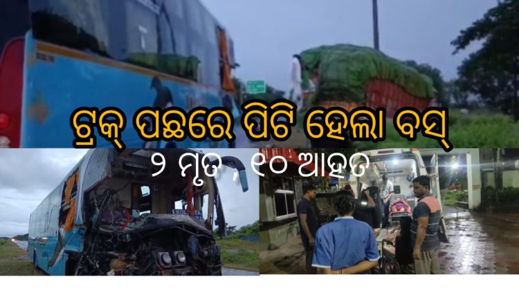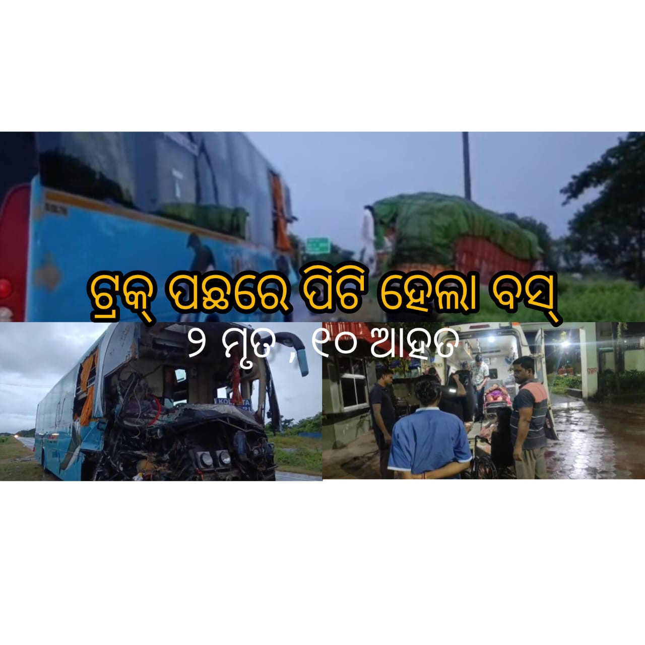 ବାଲେଶ୍ଵର:୨୯/୧୯(ସତ୍ୟାନ୍ୟୁଜ) ବାଲେଶ୍ଵର ଜିଲ୍ଲା ୬୦ ନଂ ଜାତୀୟ ରାଜପଥ ଲକ୍ଷ୍ମଣ ନାଥ ତନଖି ଫାଟକ ନିକଟରେ ଛିଡା ହୋଇଥିବା ଧାନ ବୋଝେଇ ଟ୍ରକ କୁ ପଛପଟୁ ଯାତ୍ରୀବାହି ବସ ଧକ୍କା ଦେବା ଫଳରେ ଘଟଣା ସ୍ଥଳରେ ୨ ଜଣଙ୍କ ମୃତ୍ୟୁ ହୋଇ ଯାଇଛି। ଏହି ଦୁର୍ଘଟଣାରେ ୧୦ ରୁ ଅଧିକ ଯାତ୍ରୀ ଆହତ ହୋଇଛନ୍ତି। ଆହତଙ୍କୁ ଜଳେଶ୍ଵର ଗୋଷ୍ଠୀ ସ୍ବାସ୍ଥ୍ୟ କେନ୍ଦ୍ରରେ ଭର୍ତ୍ତି କରା ଯାଇଛି। ସୁଚନା ଅନୁଯାୟୀ ଲକ୍ଷ୍ମଣନାଥ ଟୋଲ ପ୍ଲାଜା ନିକଟରେ ଏକ ଧାନ ବୋଝେଇ ଟ୍ରକ ରାସ୍ତା ପାର୍ଶ୍ବରେ ଛିଡ଼ା ହୋଇଥିବା ବେଳେ ଭୁବନେଶ୍ୱର ରୁ କଲିକତା ଅଭିମୁଖେ ଯାଉଥିବା ଡଲଫିନ ନାମକ ଏକ ଘରୋଇ ବସ୍ ପଛପଟୁ ଧକ୍କା ଦେଇଥିଲା। ଫଳରେ ବସର ଆଗ କ୍ୟାବିନ ସମ୍ପୁର୍ଣ୍ଣ ନଷ୍ଟ ହୋଇ ଯାଇଛି। ଘଟଣା ସ୍ଥଳରେ ବସ୍ ହେଲପର ଙ୍କ ମୃତ୍ୟୁ ହୋଇ ଯାଇଥିବା ବେଳେ ଡ଼ାକ୍ତରଖାନାରେ ଡ୍ରାଇଭର ଙ୍କ ମୃତ୍ୟୁ ହୋଇ ଯାଇ ଥିବା ସୂଚନା ମିଳିଛି। ବସ୍ ରେ ୫୦ ରୁ ଉର୍ଦ୍ଧ ଯାତ୍ରୀ ଥିବା କୁହା ଯାଉଛି।