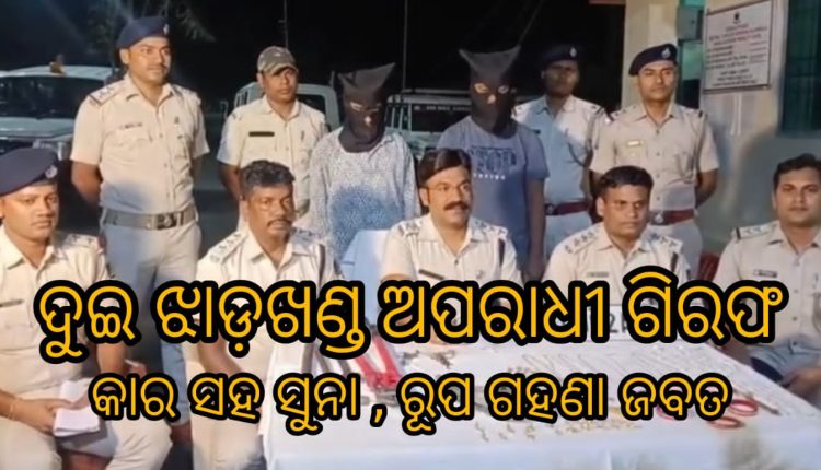 ରାଉରକେଲା : ଘର କବାଟ ଭାଙ୍ଗି ଚୋରି କରୁଥିବା ଦୁଇ ଝାଡ଼ଖଣ୍ଡ ଅପରାଧୀ ଗିରଫ।। କାର ସହ ଲକ୍ଷାଧିକ ଟଙ୍କାର ସୁନା , ରୂପା ଗହଣା ଜବତ।